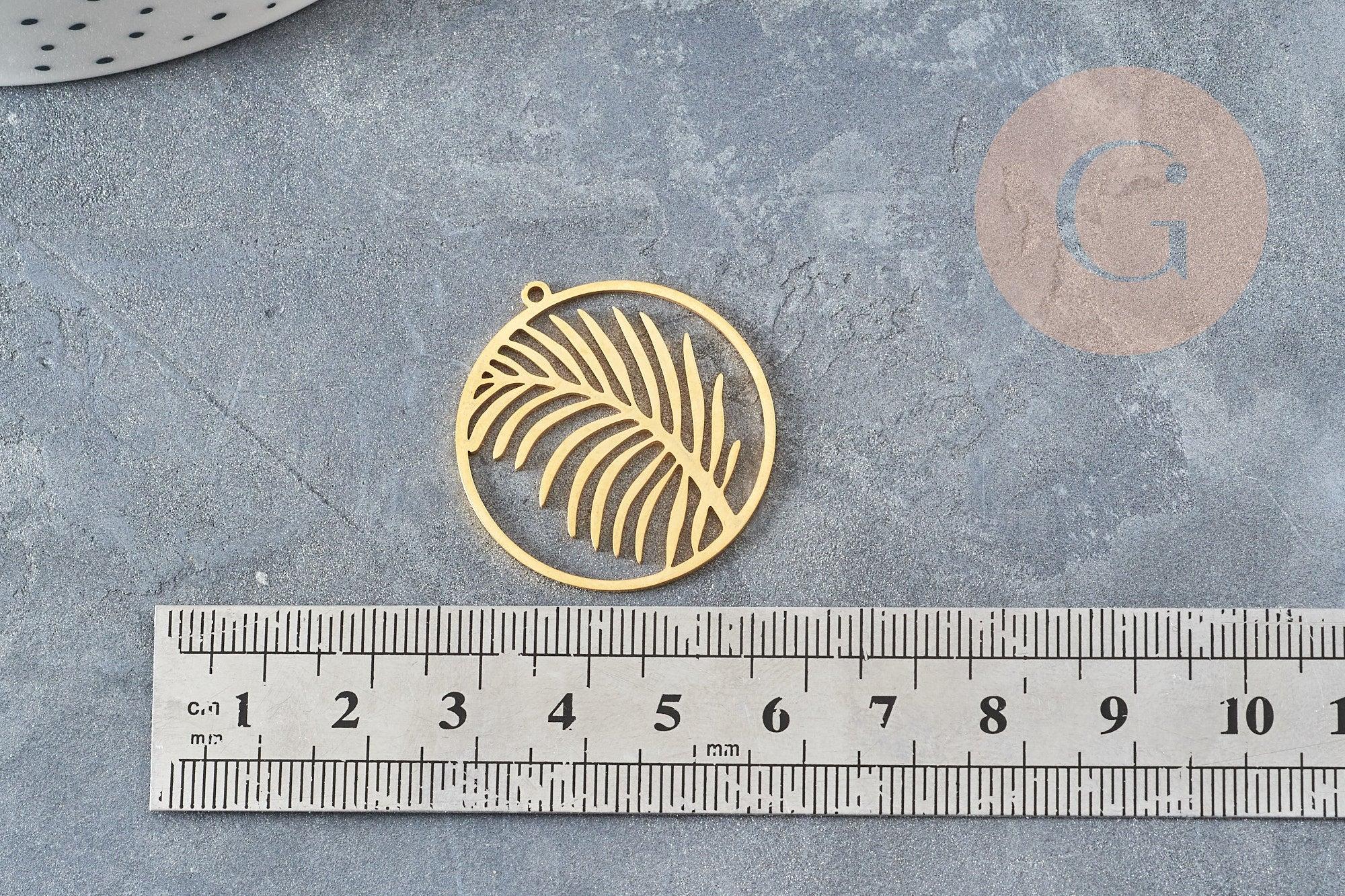 Un colgante de acero inoxidable bañado en oro con forma de hoja de palma , un complemento perfecto para realizar tu propia bisutería DIY.