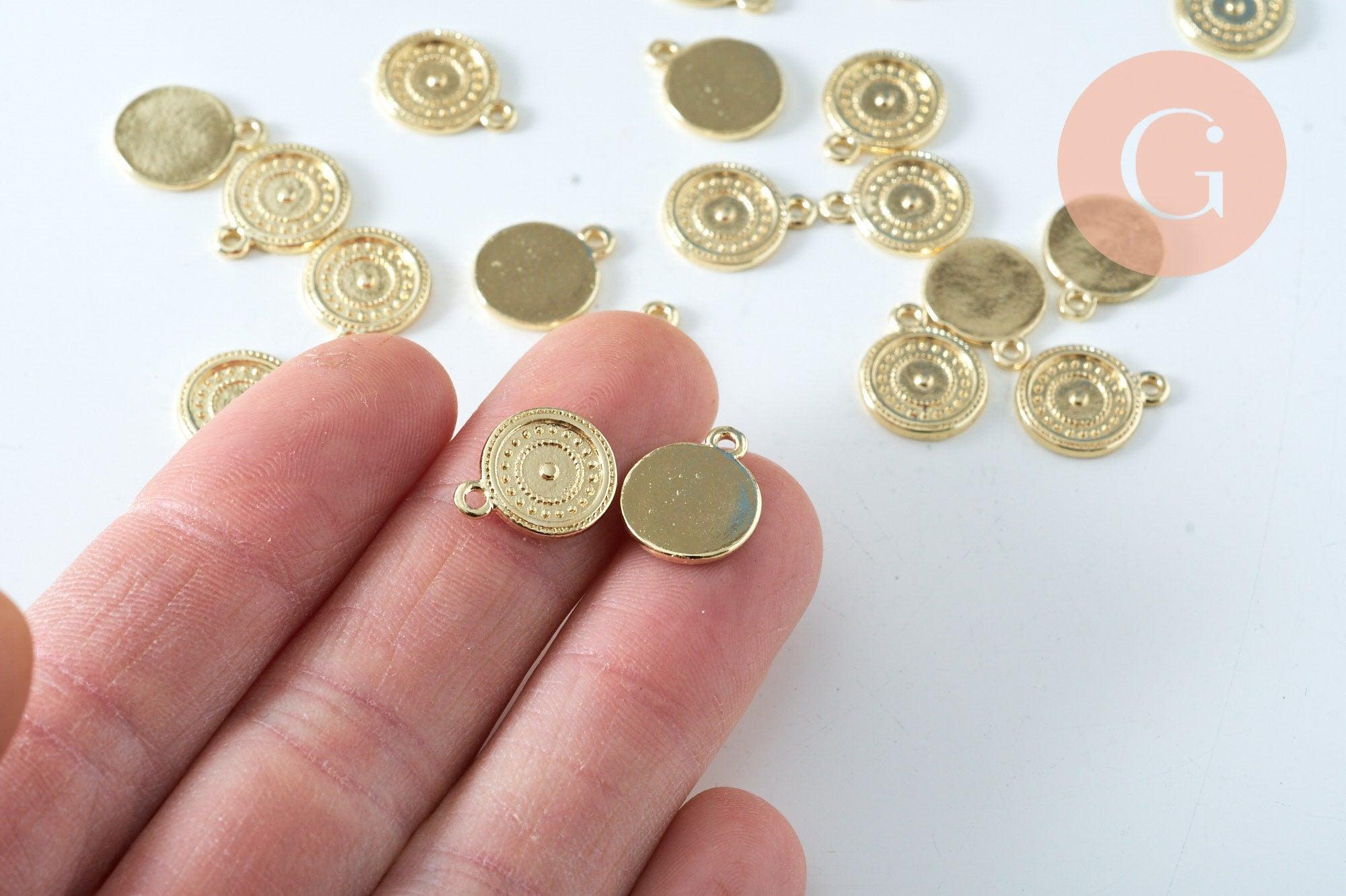 Para realizar magníficos collares, pendientes y pulseras, este adorable colgante redondo en zamac bañado en oro de 18 quilates, con una pequeña decoración formada por pequeños puntos en relieve. Simplemente usa tu colgante con una bonita cadena completa o un...