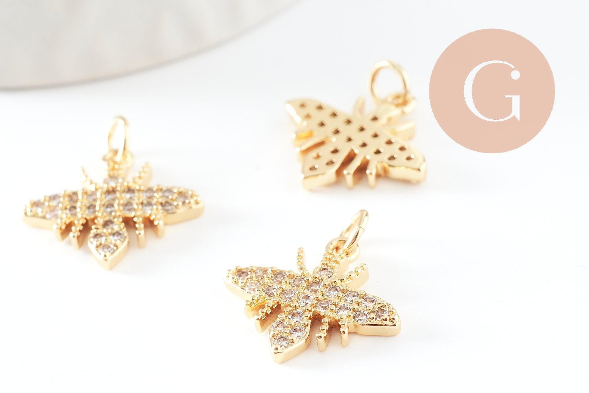 Para crear magníficos collares, pendientes y pulseras, adopte estas abejas de latón bañadas en oro de 18 quilates y decoradas con circonitas blancas.