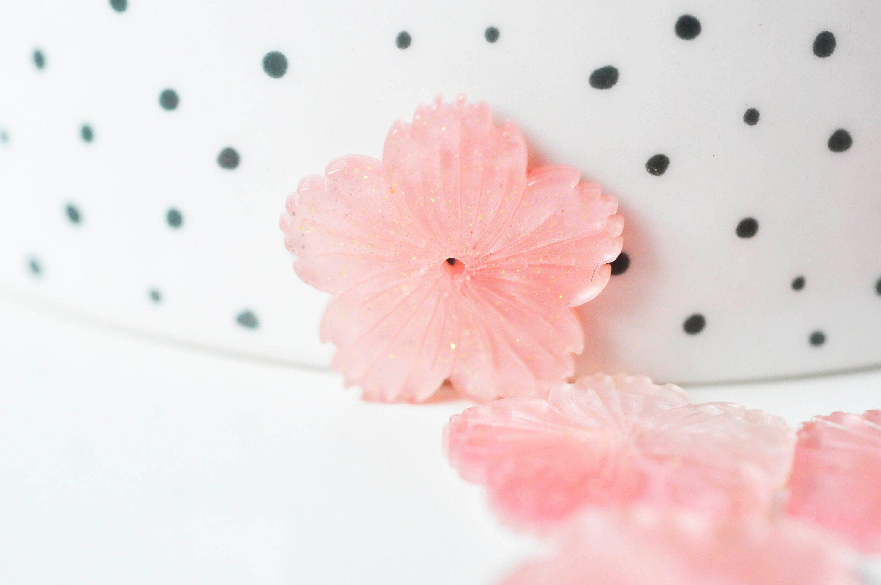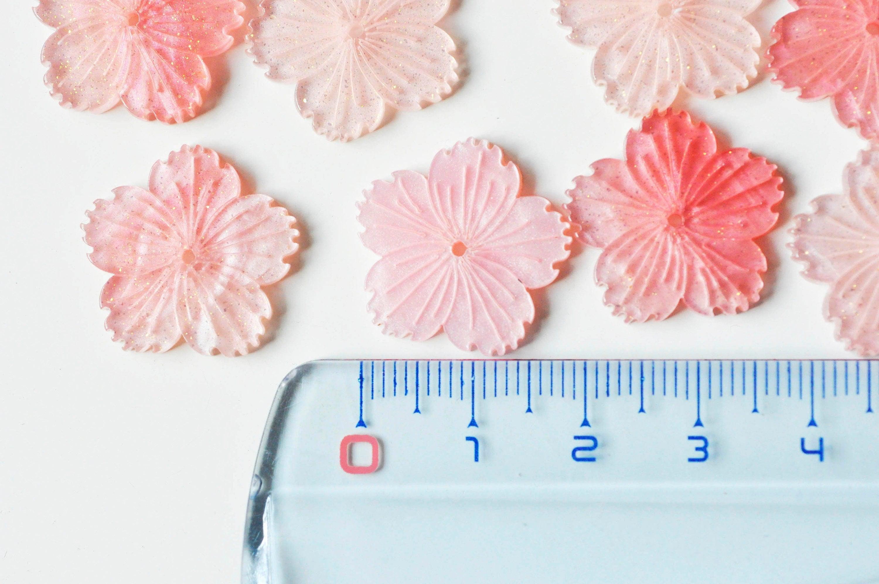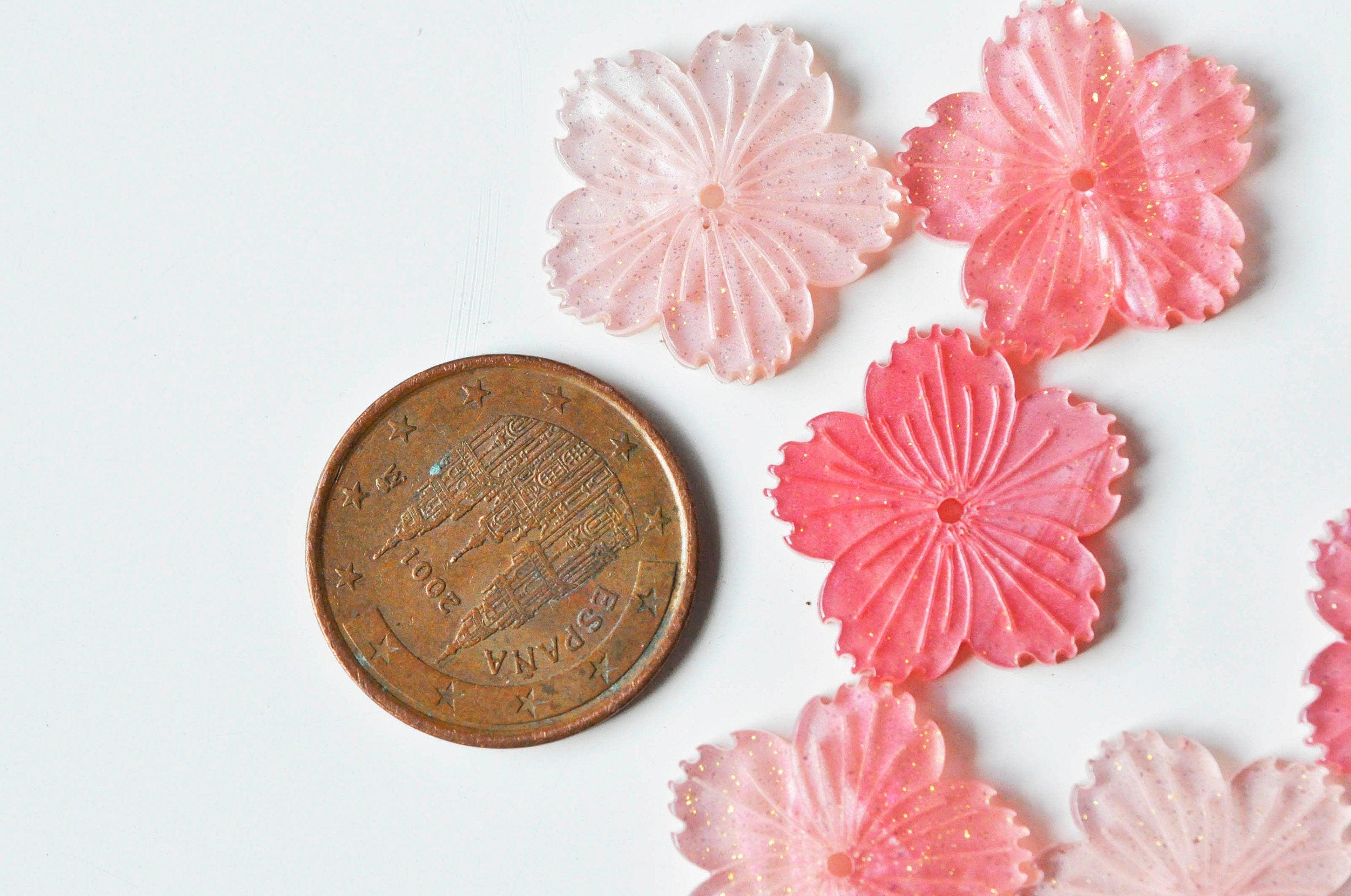 Colgante de flor de acetato de celulosa rosa con purpurina para crear collares y pendientes modernos y de tendencia.
