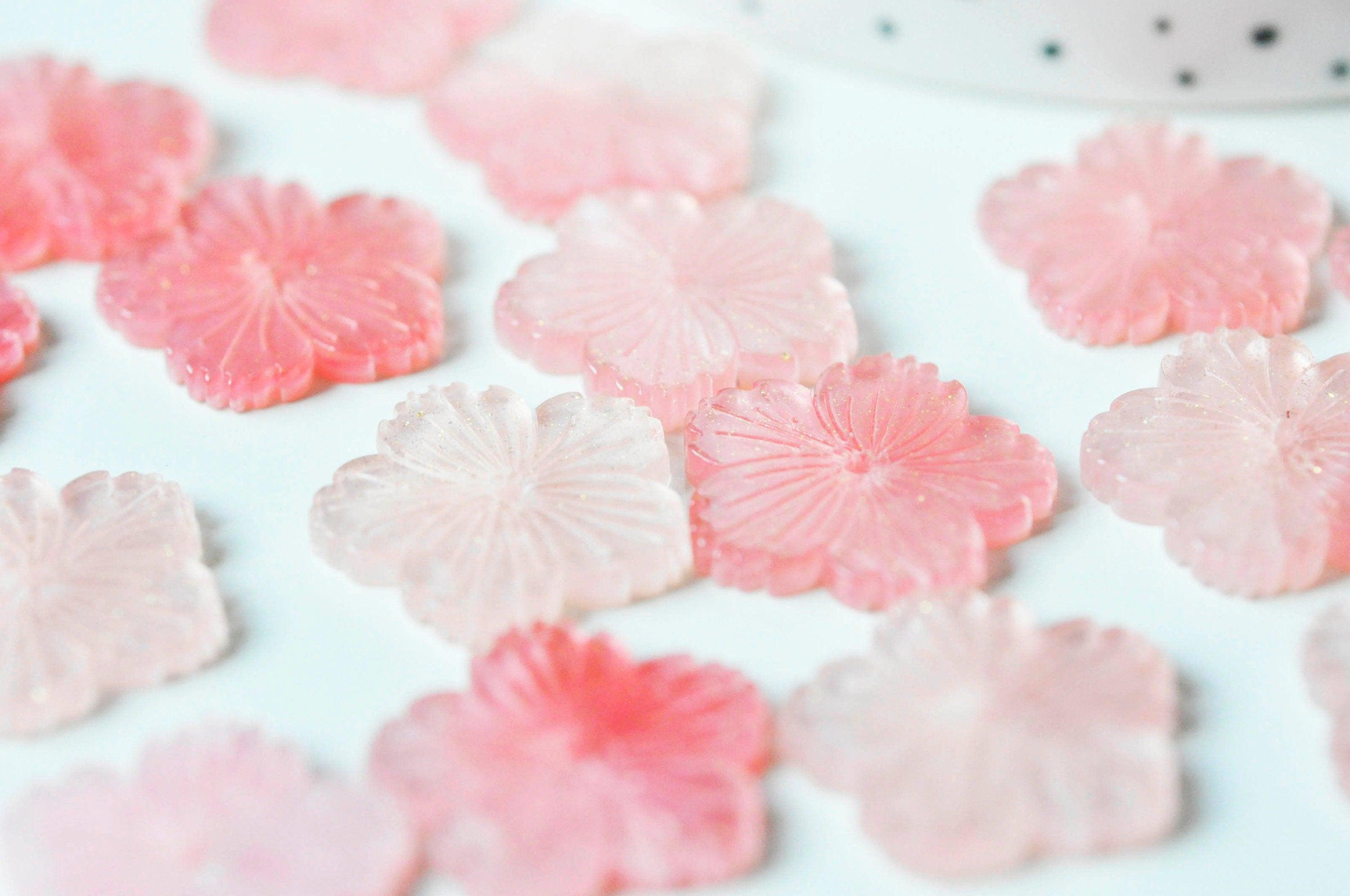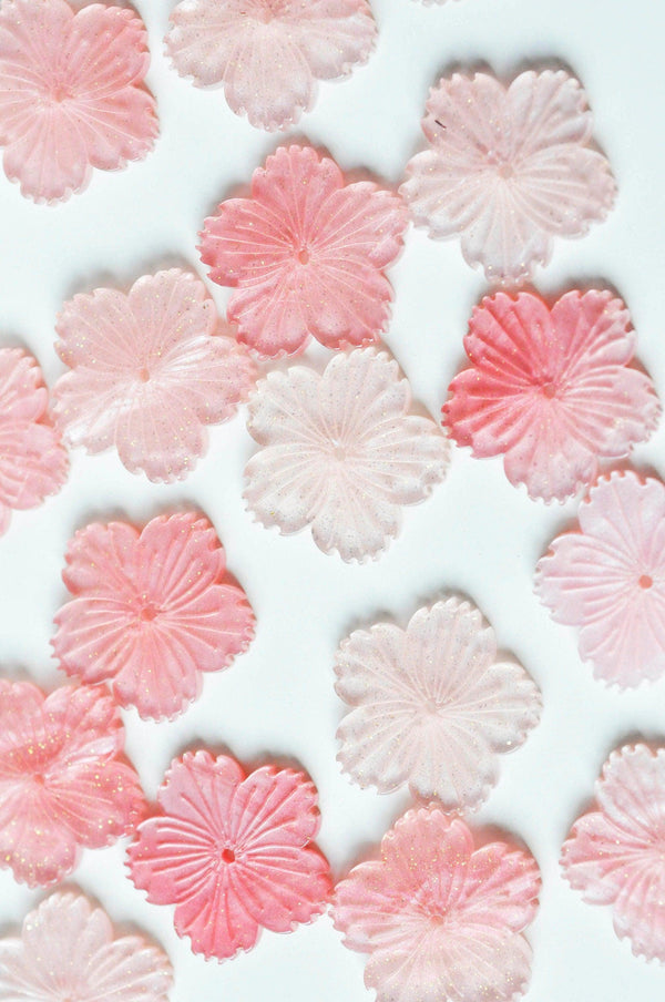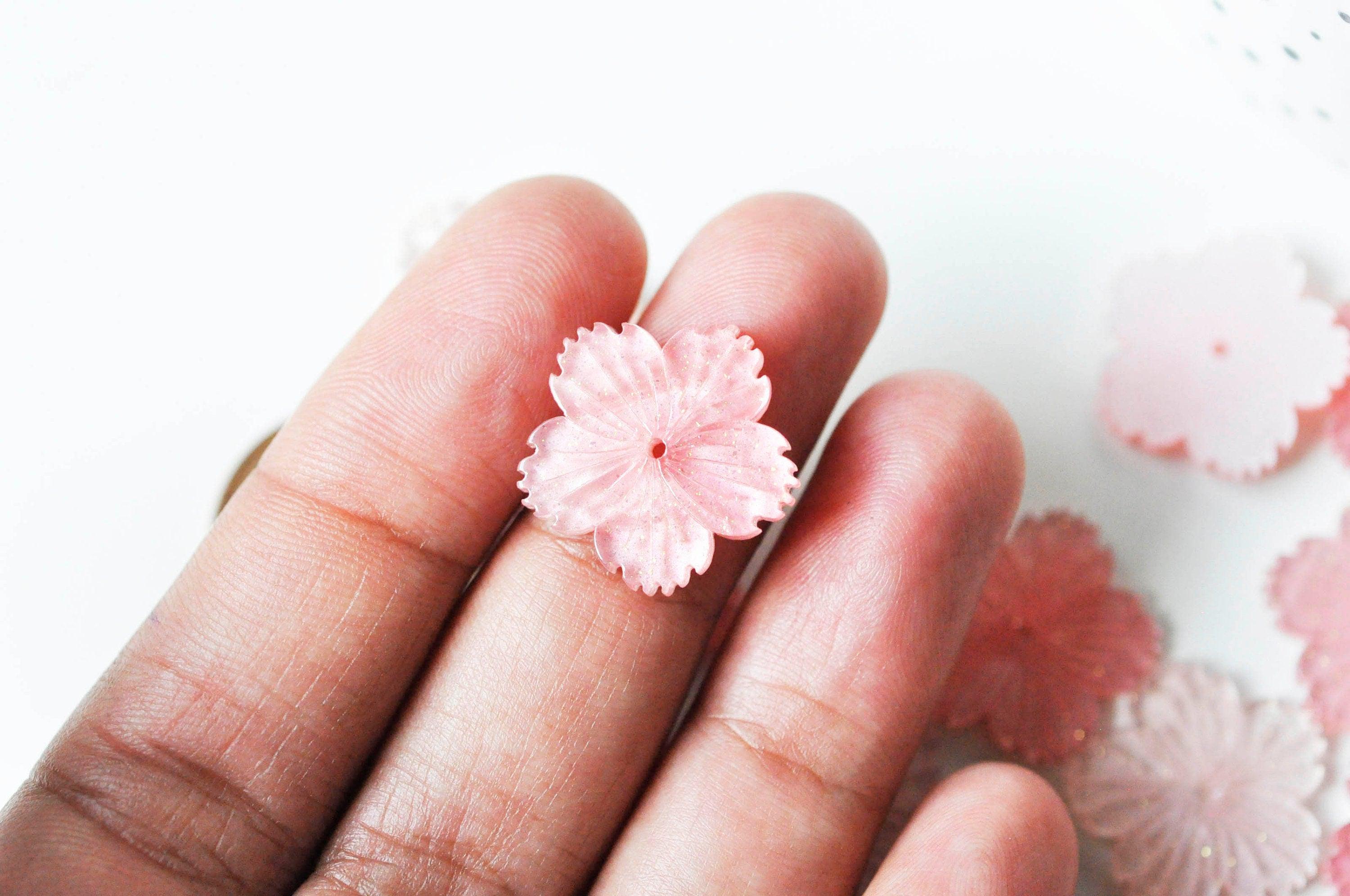 Colgante de flor de acetato de celulosa rosa con purpurina para crear collares y pendientes modernos y de tendencia.