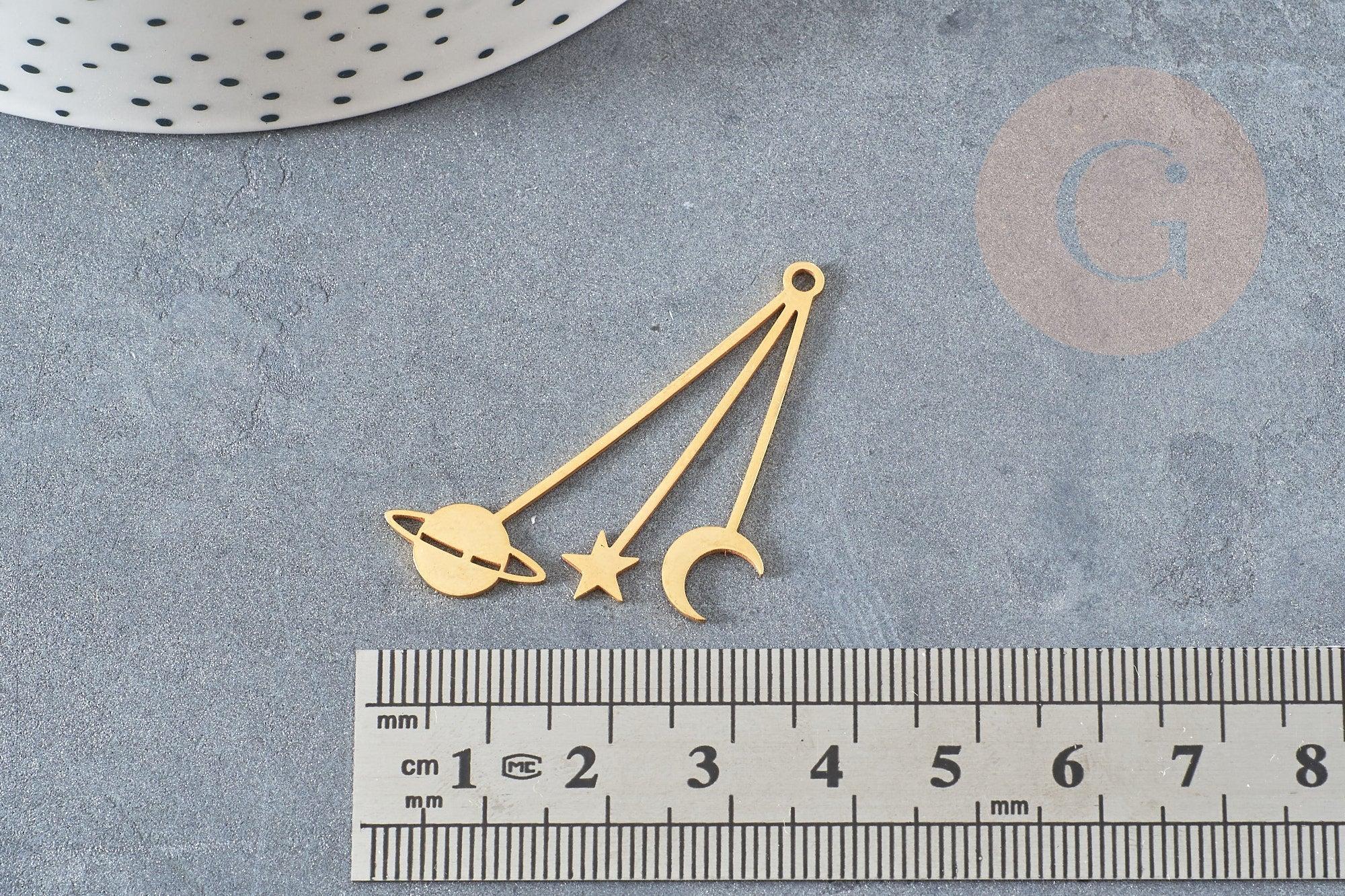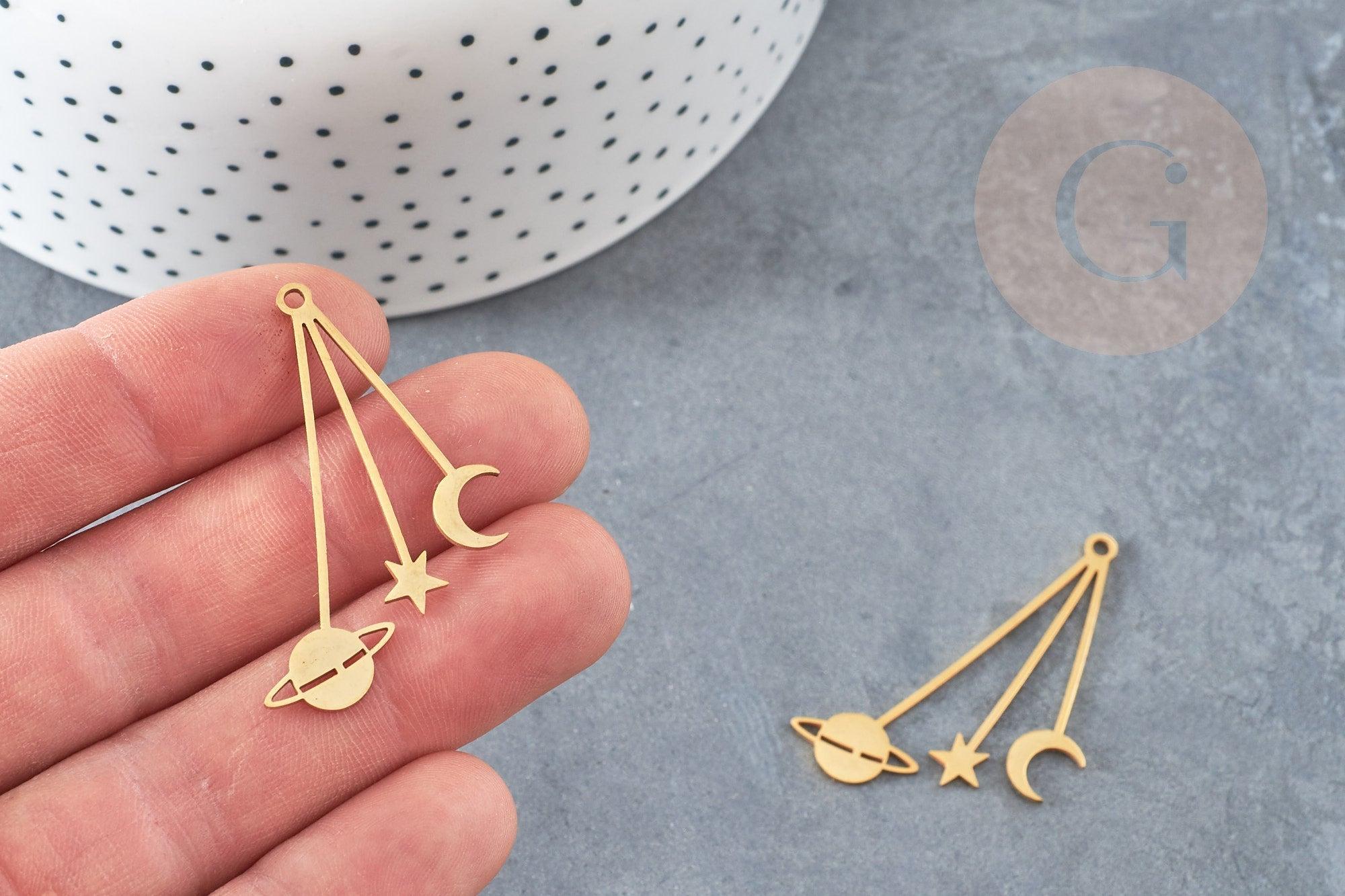 Para tus joyas de tendencia astral y constelación , aquí tienes un lindo colgante en forma de lluvia de estrellas y planetas en acero dorado , que puedes adornar con una piedra o perlas.
