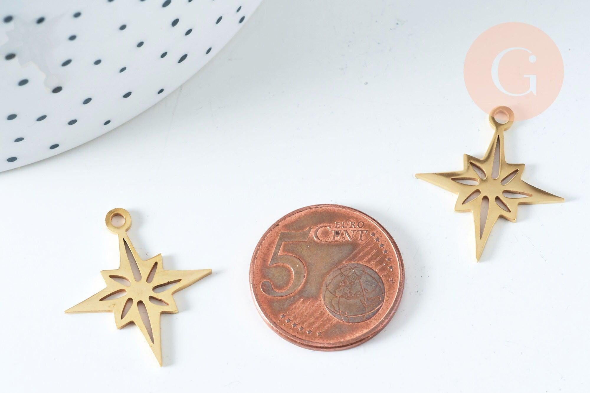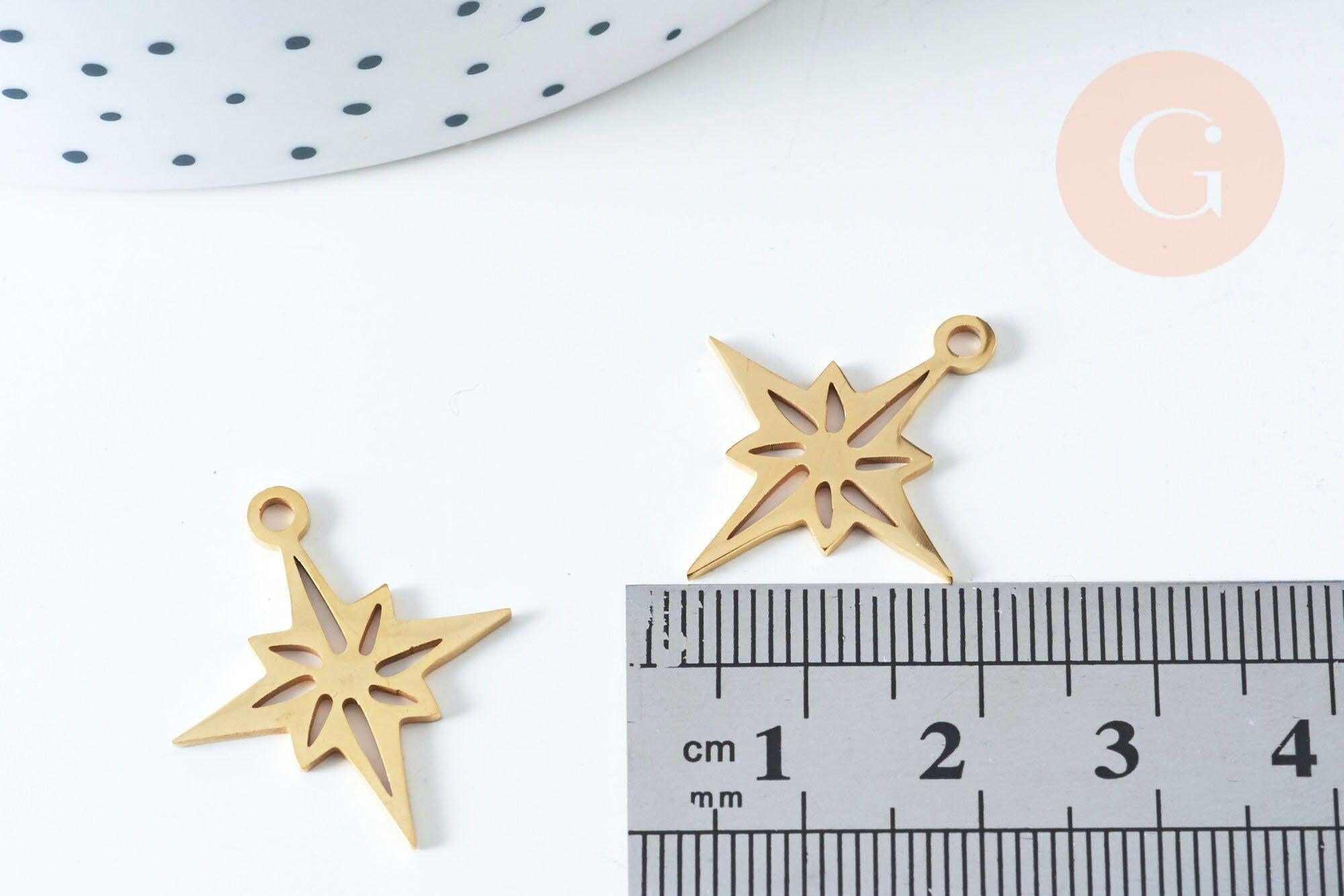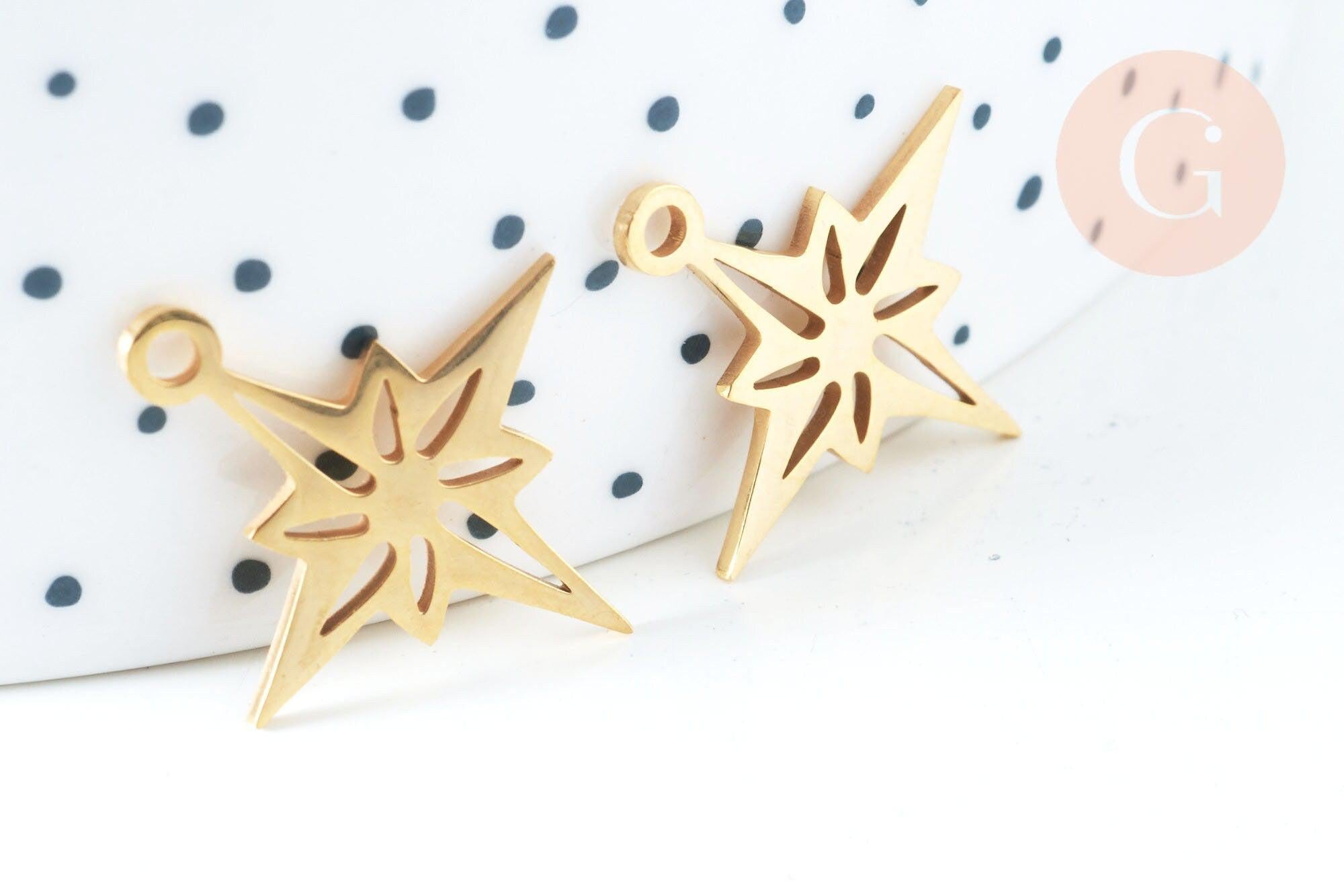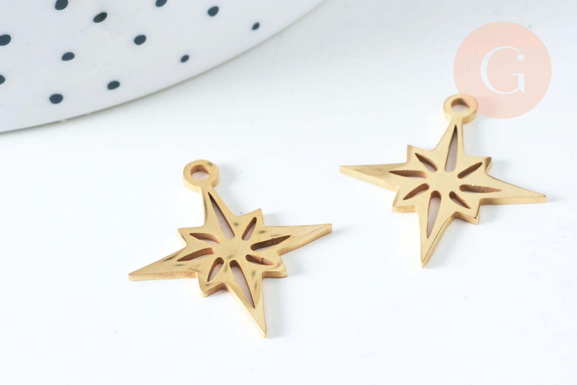 Colgante estrella del norte acero inoxidable 201 dorado 24 mm, dije de acero inoxidable dorado sin níquel, x1 G5730