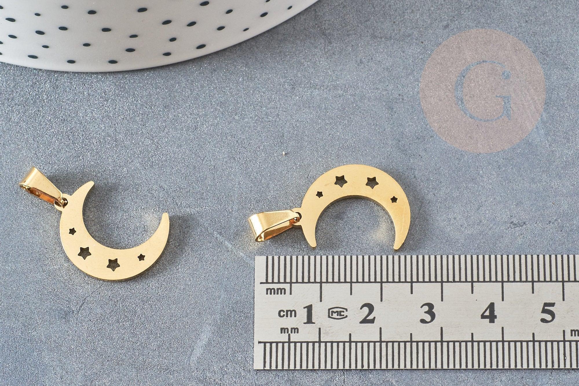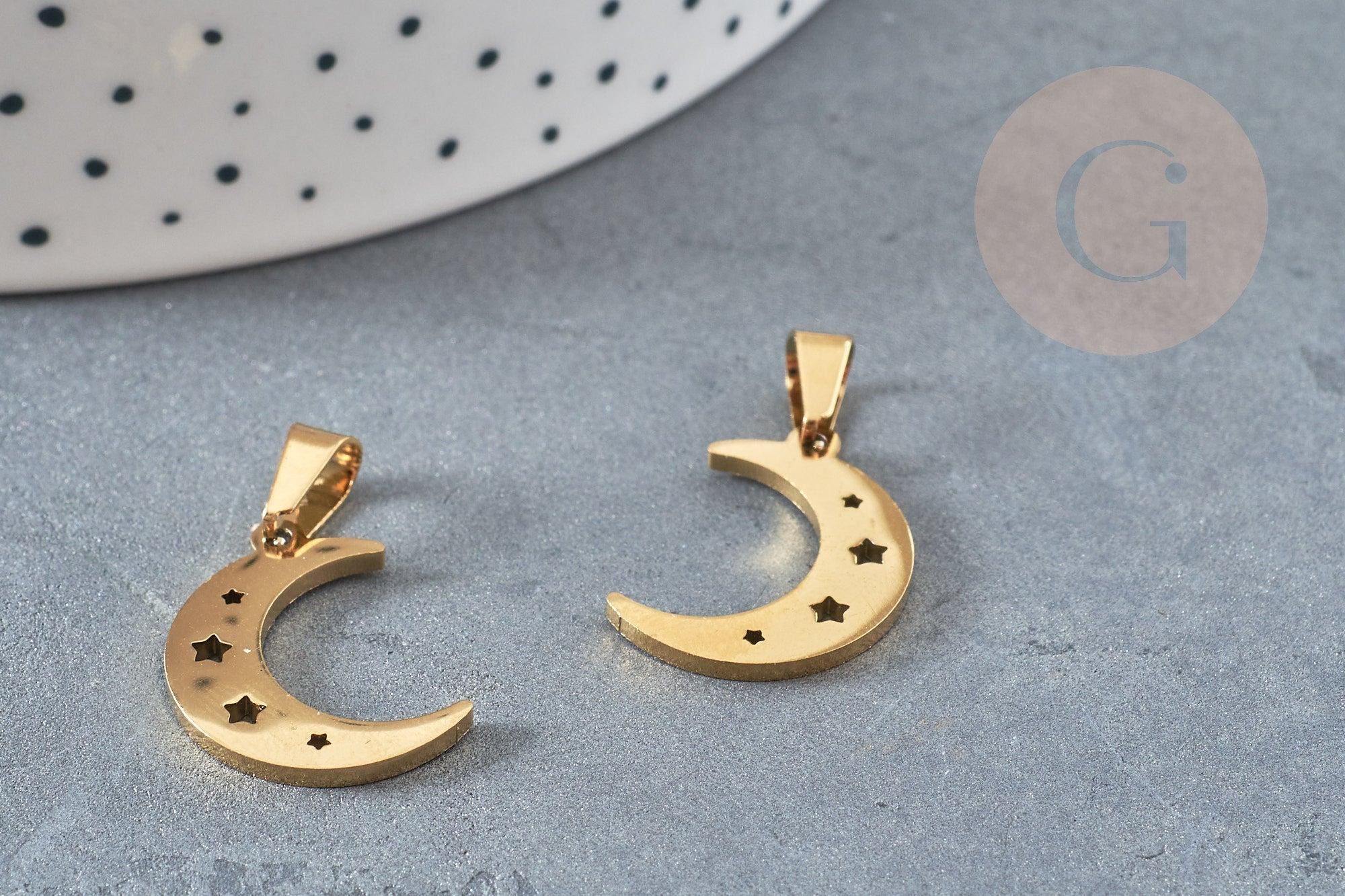 Colgante luna y estrellas de acero dorado 20mm, charm dorado, acero inoxidable dorado, colgante sin níquel, x1 G6160