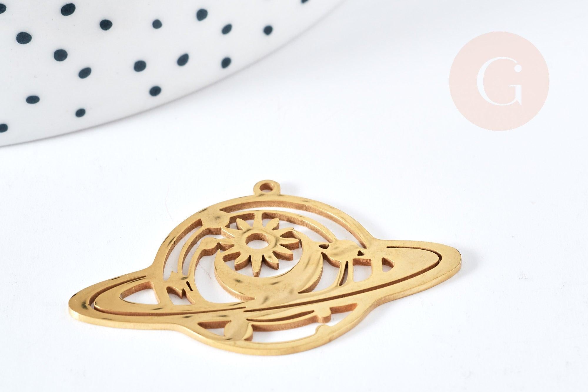 Colgante planeta místico 201 acero inoxidable oro 25,5 mm, colgante con tema espacial sin níquel para la creación de joyas, x1 G5691