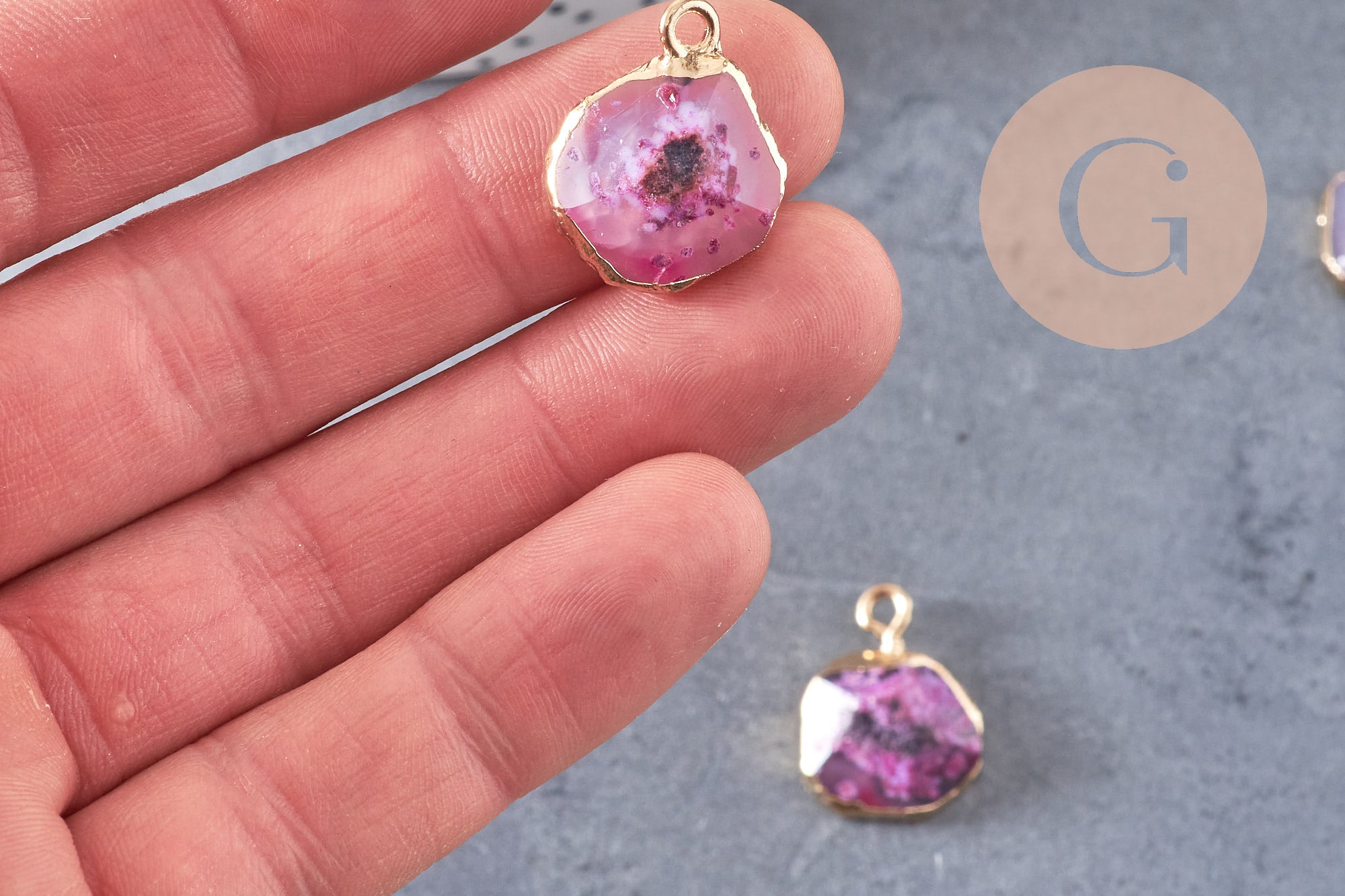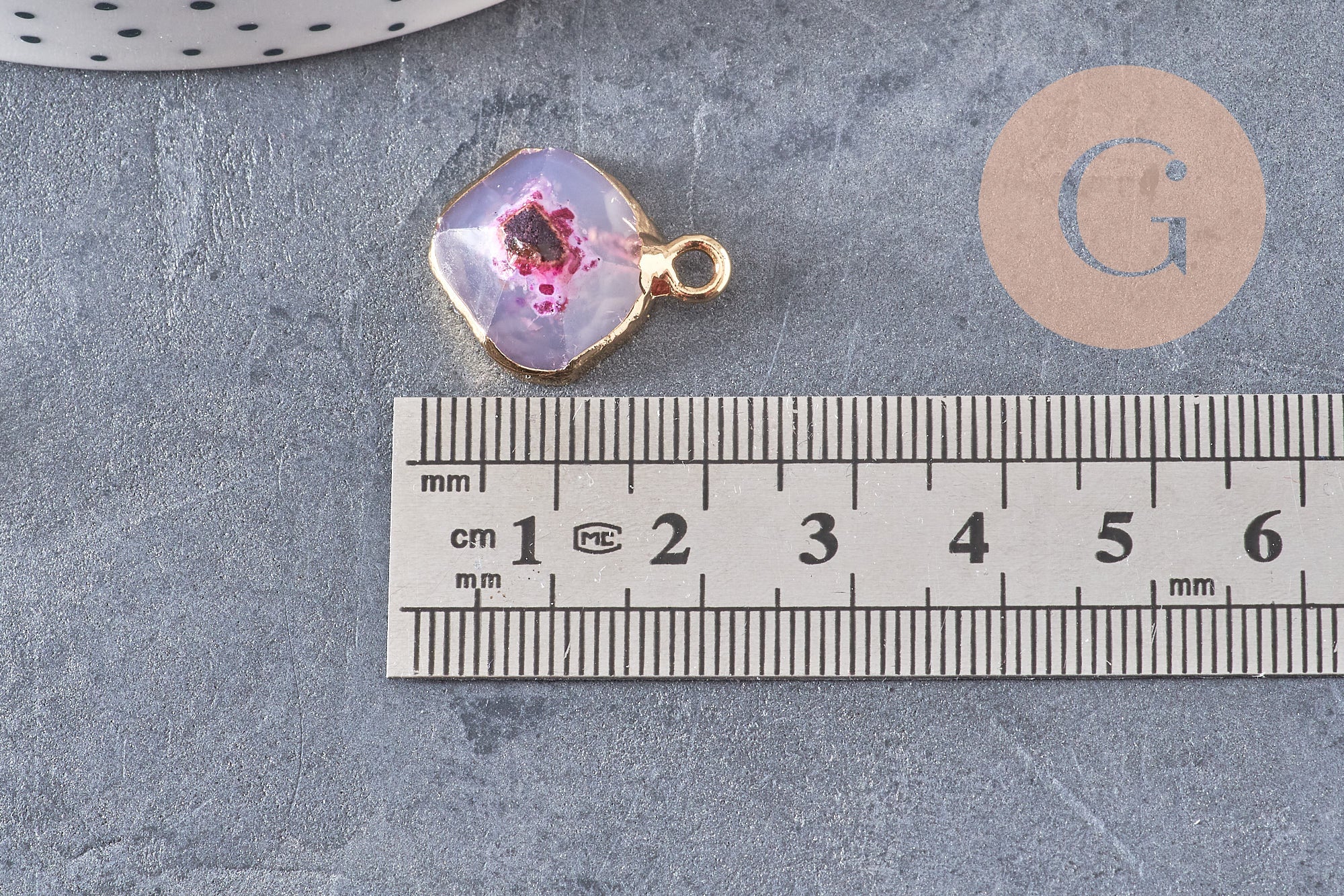 Pendentif agate rose, pendentif pierre, agate naturelle, support doré, création bijoux, pierre naturelle, 17-22mm, x1,G2528