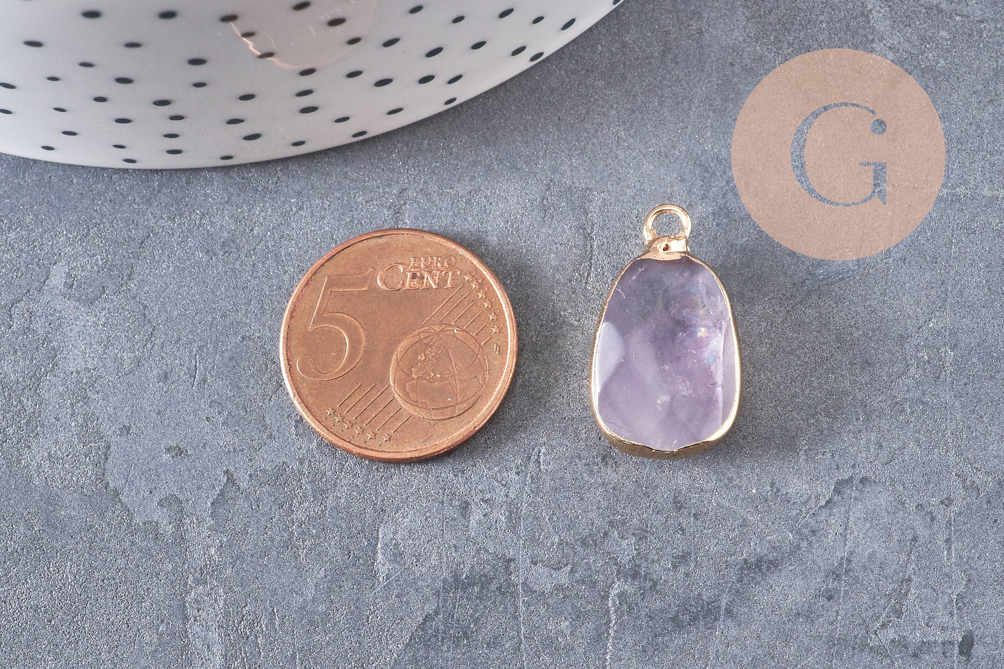 Colgante de amatista violeta natural sobre soporte de hierro bañado en oro, para realizar collares, pendientes o sautoirs de moda.