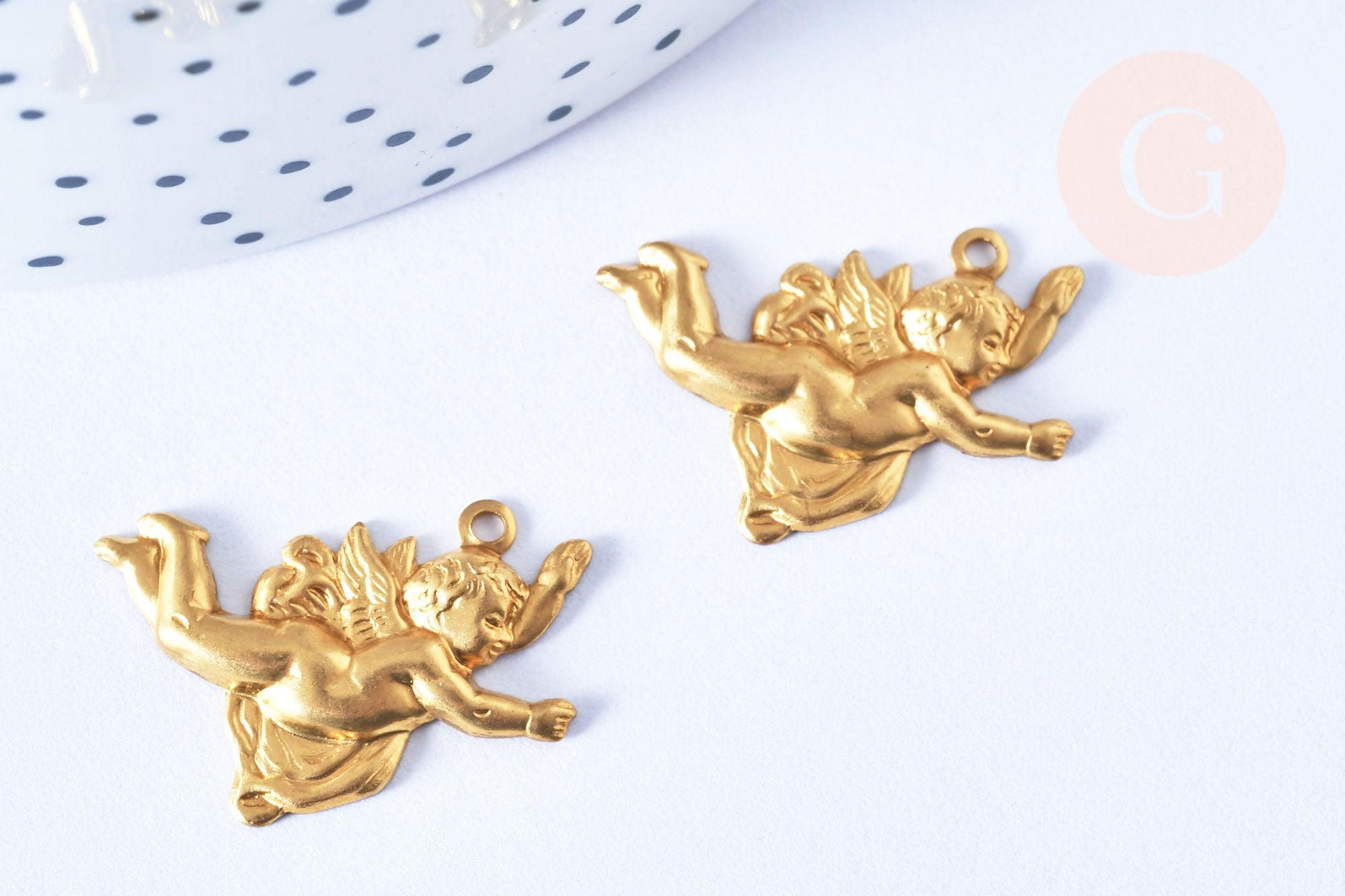 EP Pendentif ange chérubin laiton brut 27mm, x1 (G6503)
