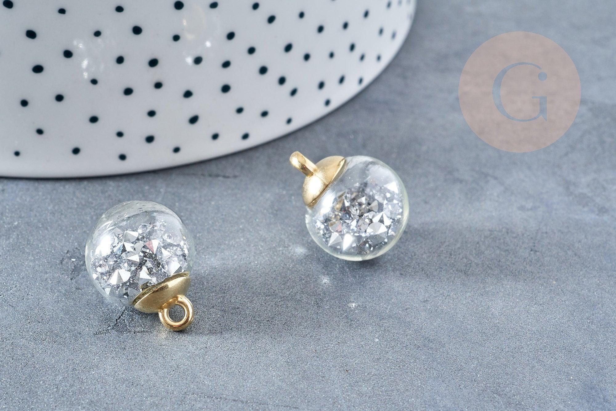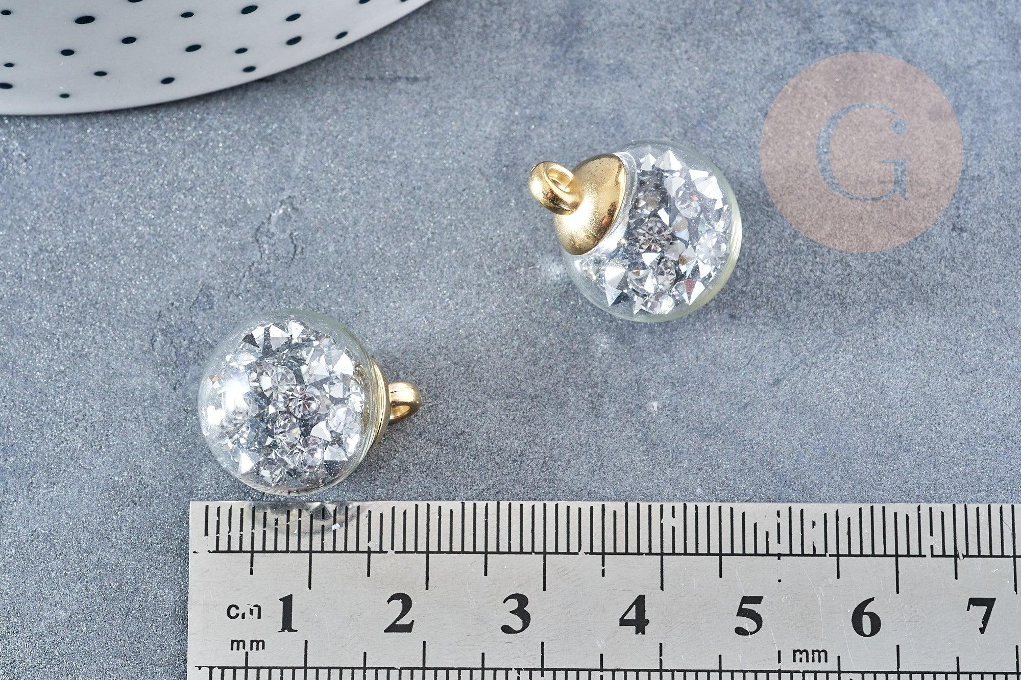 Colgante de burbuja de vidrio transparente gris cristal oro fianza de plástico 21 mm, creación de collar largo, colgante de escaparate, UNITE G8682