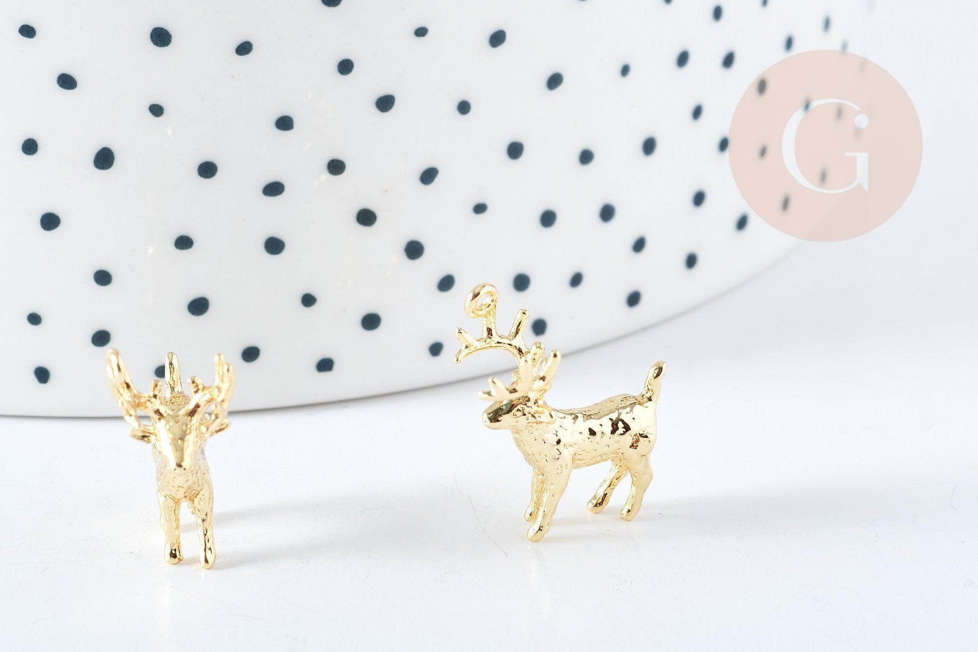 Pendentif cerf laiton doré 19mm, création de bijoux, pendentif cerf, pendentif laiton doré, laiton doré, 19mm x1 G8871