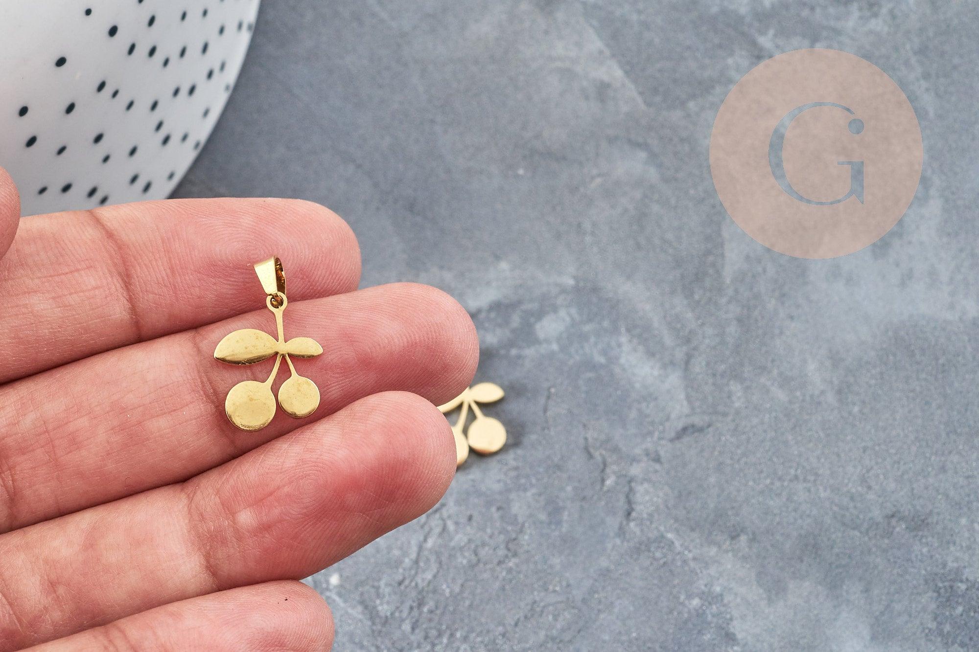 Pendentif cerise acier 304 inoxydable doré 15.5mm, x1 (G3634)