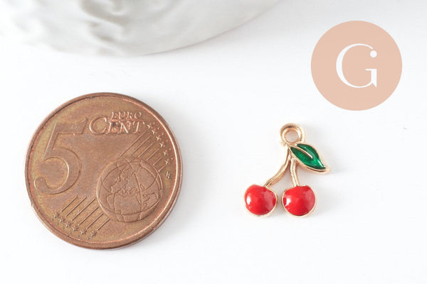 Colgante de cereza dorada esmaltada en zamac rojo dorado 13 mm x 5 (G3307)