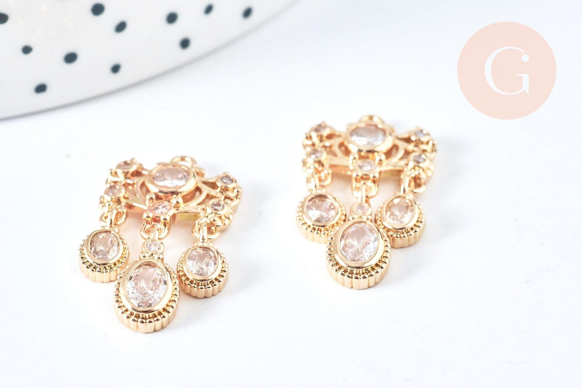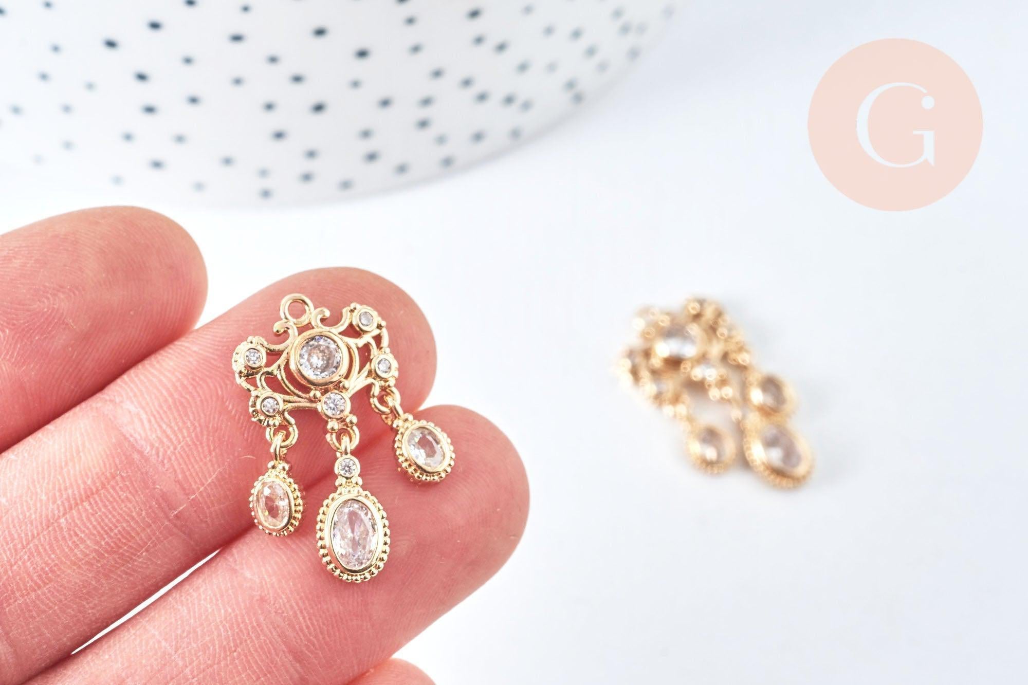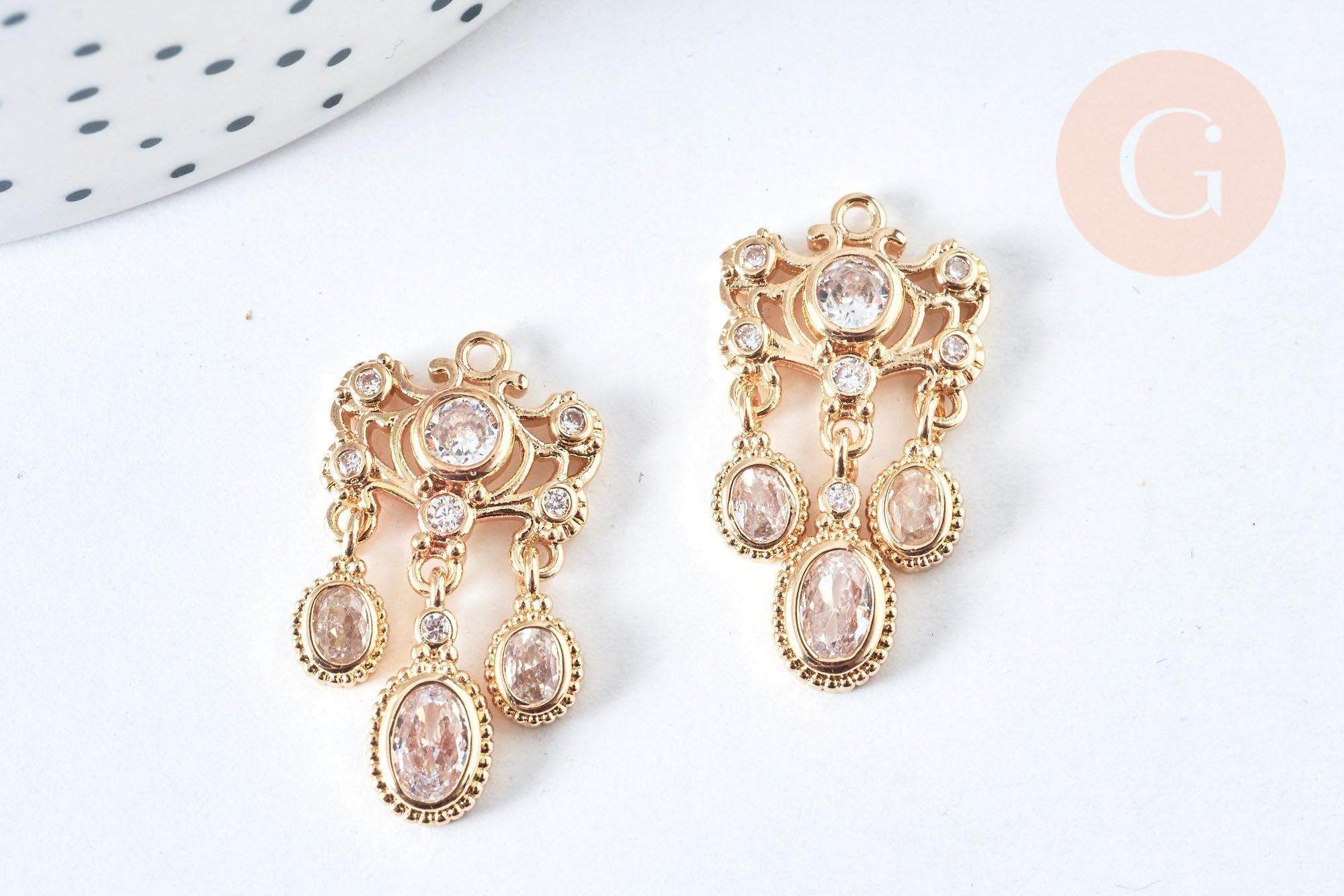 Pendentif chandelier laiton doré zircons cubiques 28mm,création bijoux chandelier, x1 (G6961)