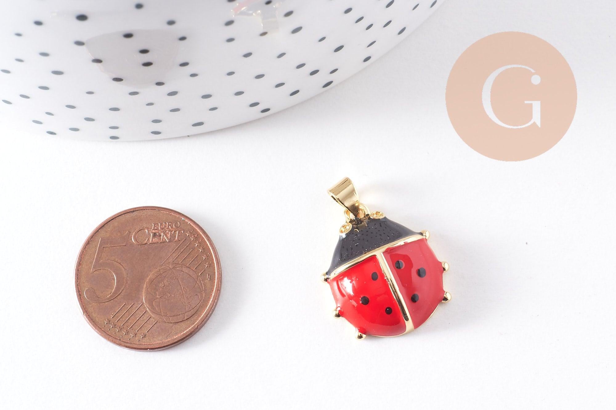 Añade un toque de suerte y alegría a tus joyas hechas a mano con este colgante de mariquita en latón chapado en oro y esmalte rojo . Finamente elaborado, este dije de 20,5 mm es ideal para crear joyas delicadas y simbólicas, perfectas para atraer la buena fortuna y el amor.