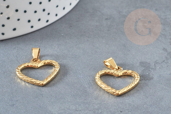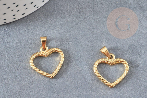 Una bonita medalla dorada que representa un corazón estriado, un colgante de amor para combinar con nuestras cadenas de acero dorado.