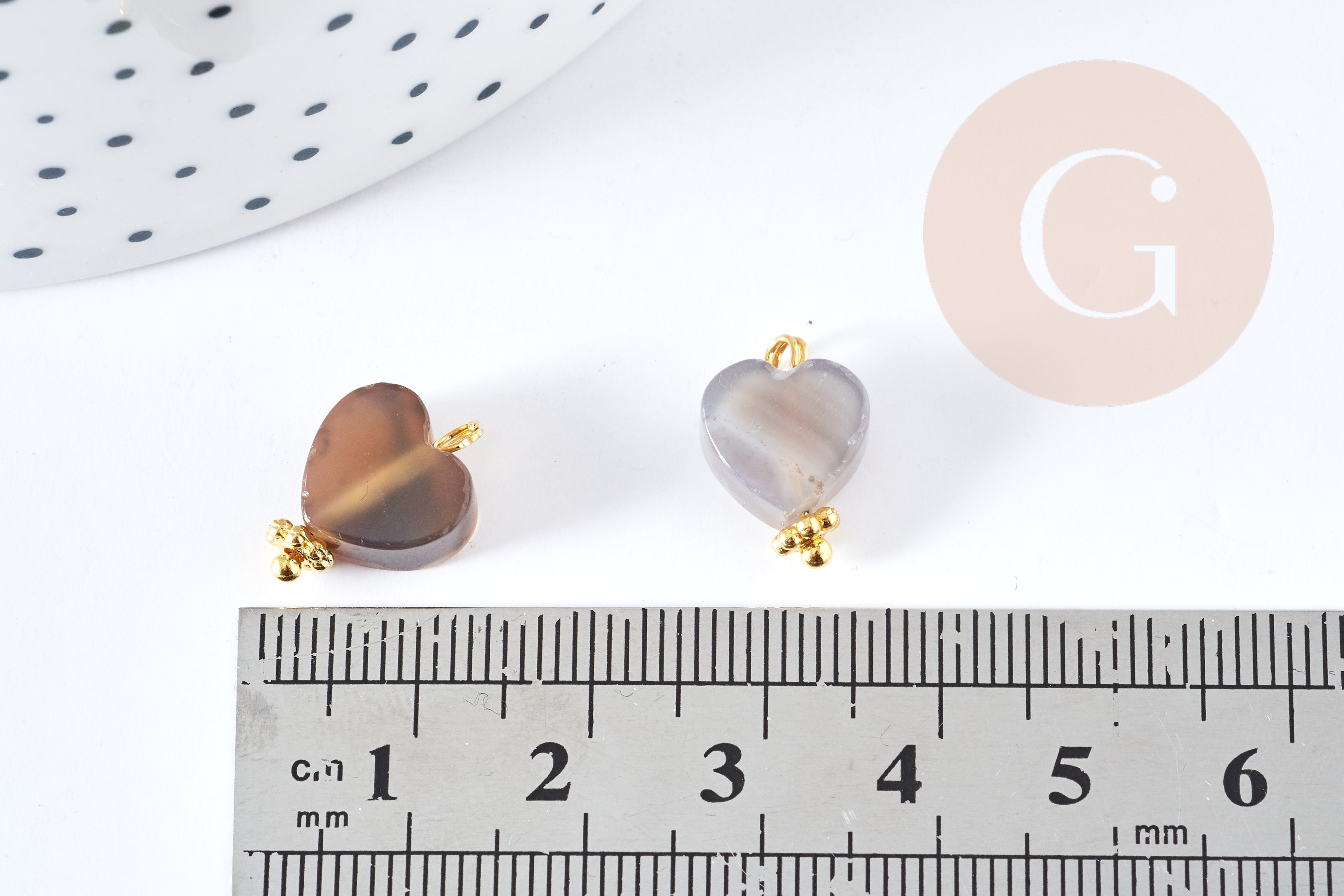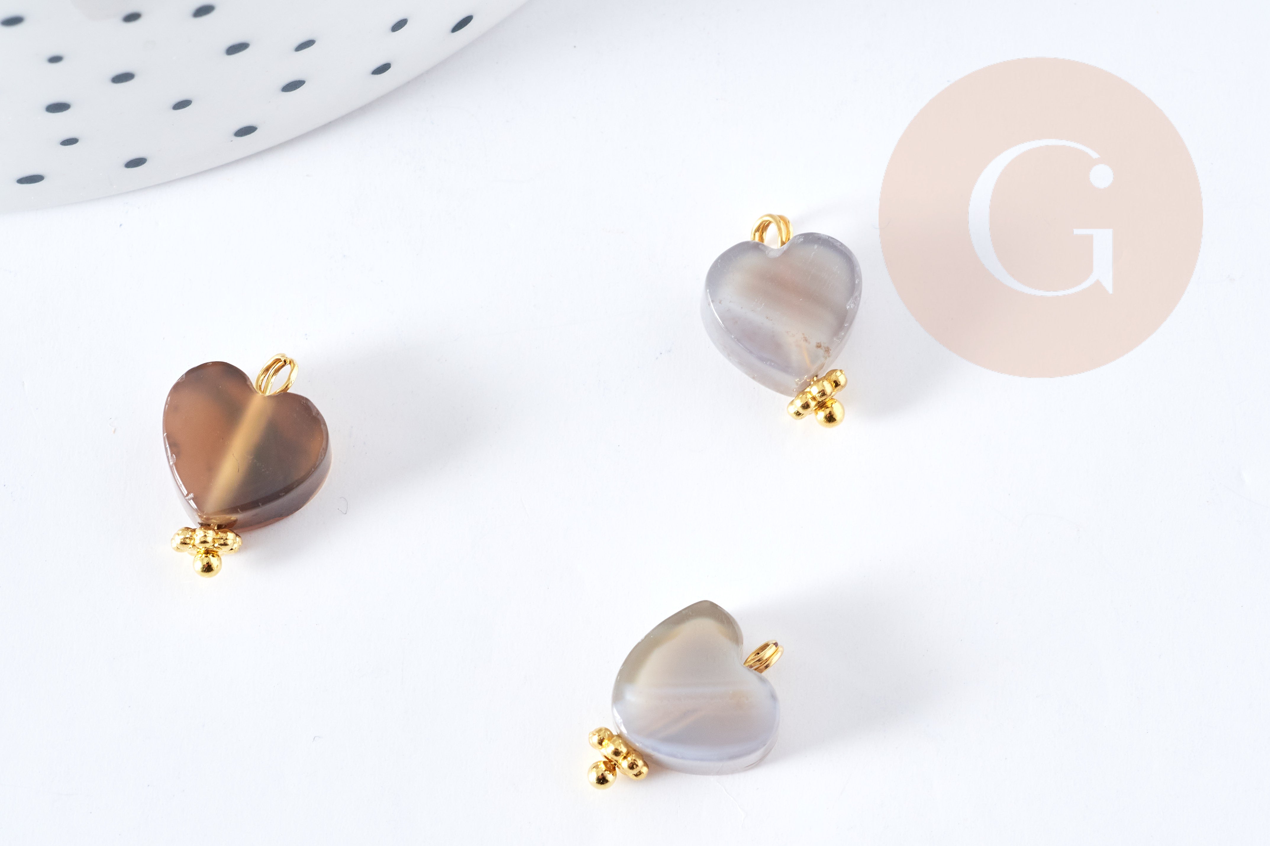 Colgante de corazón de ágata gris natural en latón dorado de 15,5 mm (x1) (G8645)
