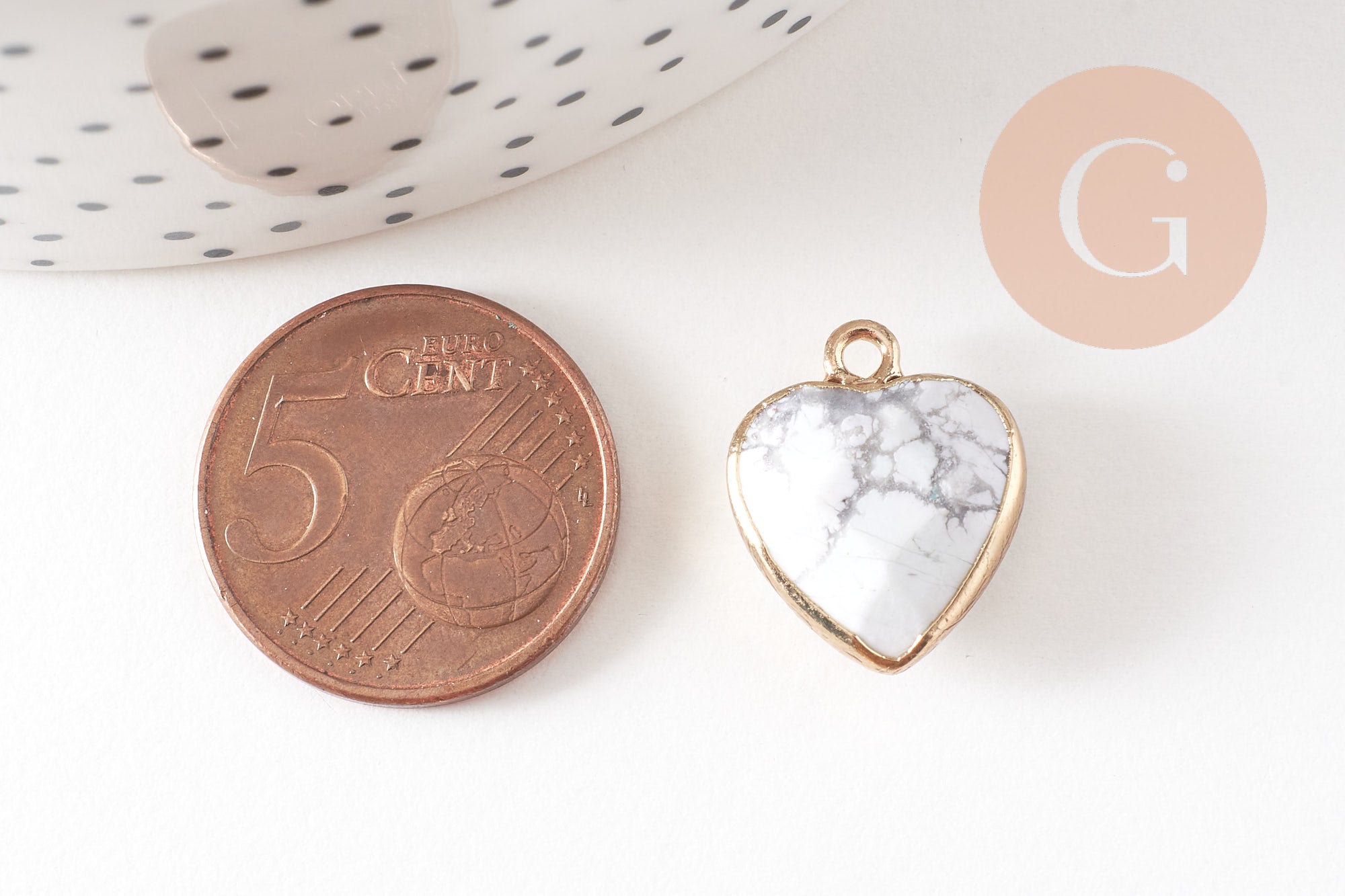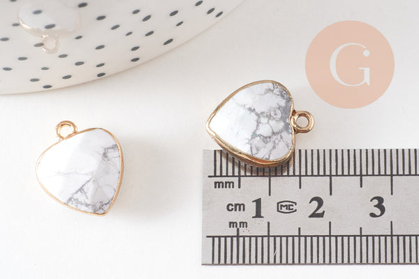 Pendentif coeur howlite facettes,pendentif bijoux, pendentif pierre, howlite naturelle, pendentif coeur,17mm, x1,G1428