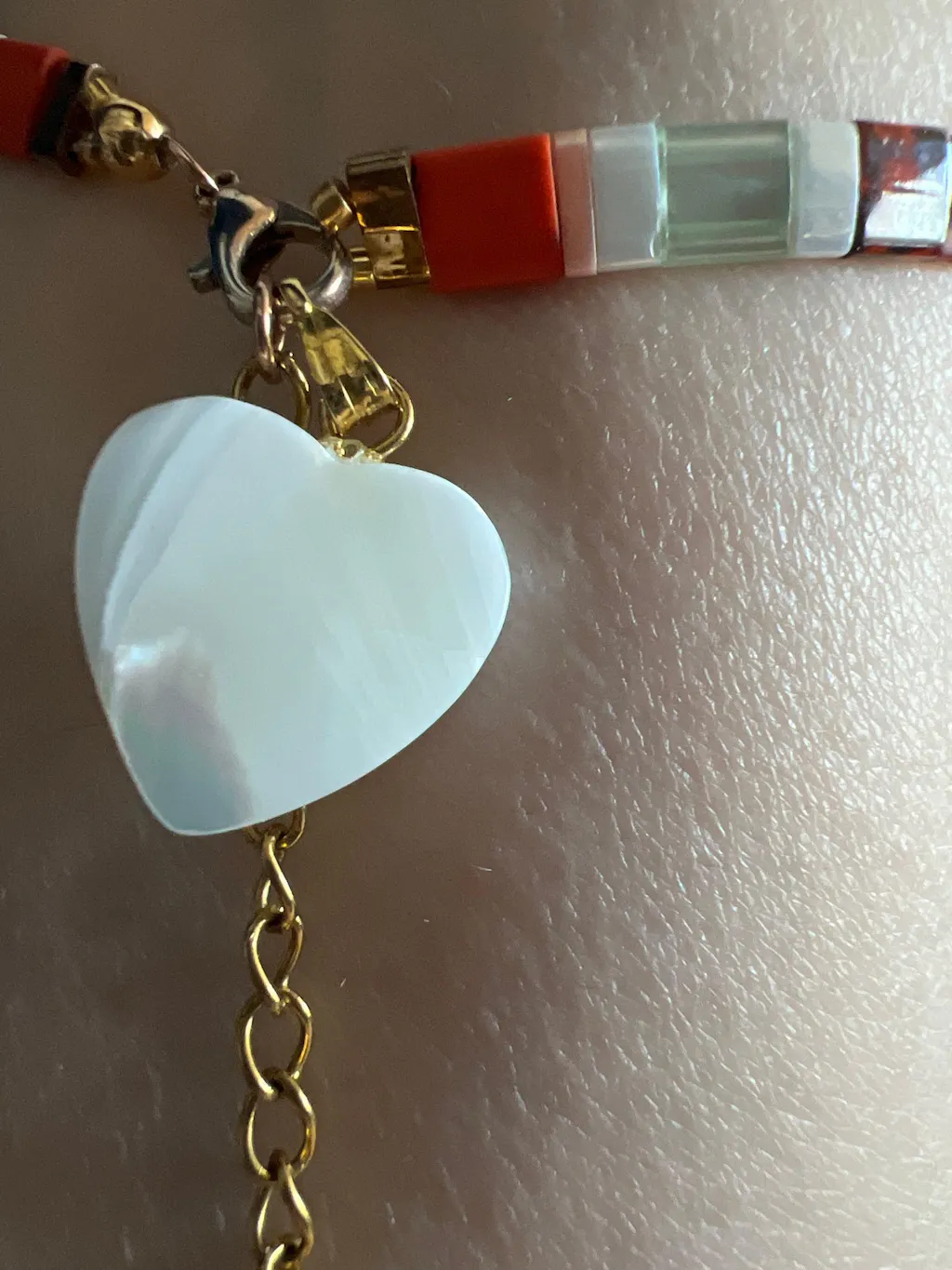 Déjese seducir por este colgante de corazón de nácar natural sobre soporte de oro.