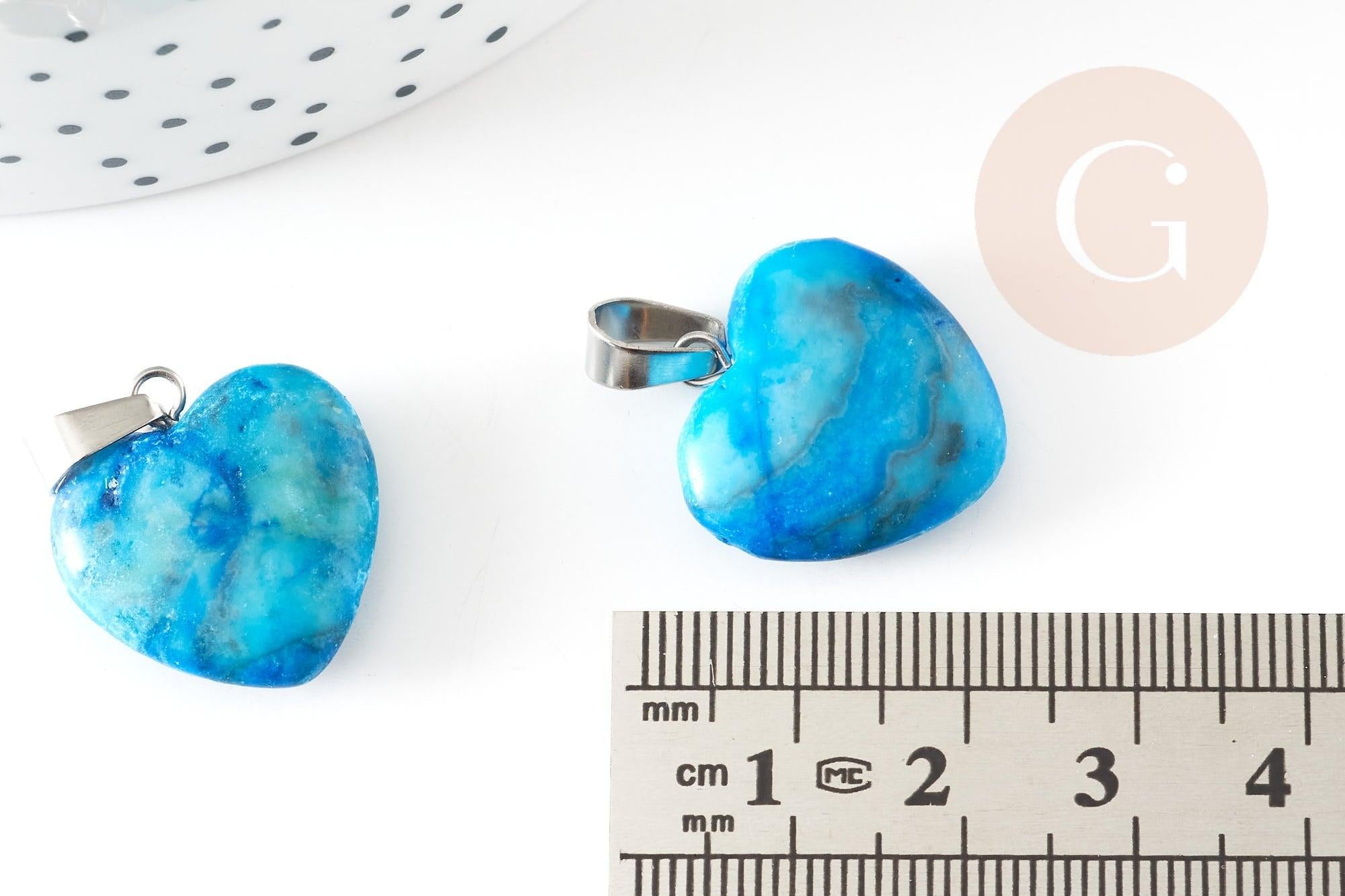 Utilice este colgante de corazón de piedra natural teñido de latón platino azul para crear su propia joyería para usar alrededor de su cuello o en sus orejas.
