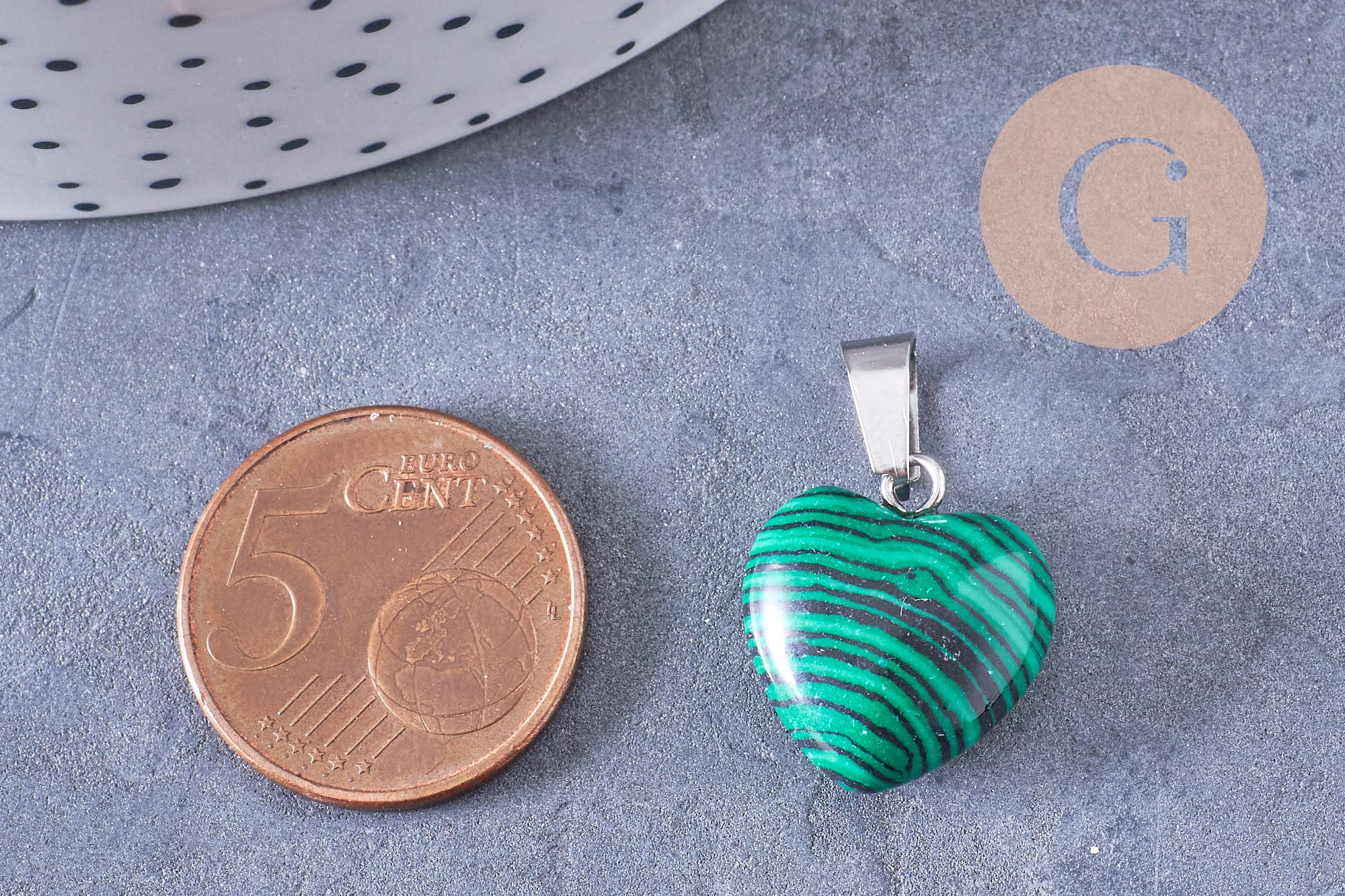 Déjate seducir por este pequeño colgante de corazón natural con su soporte de latón platino.
