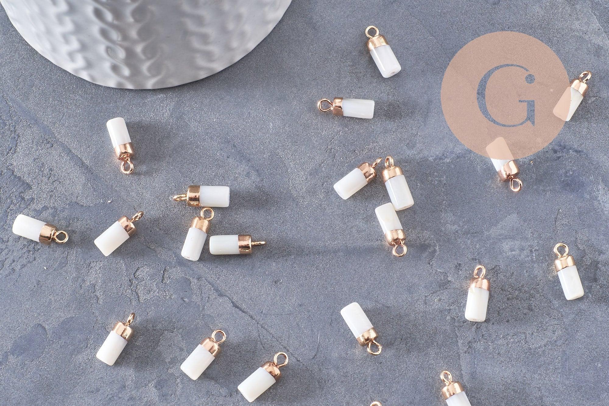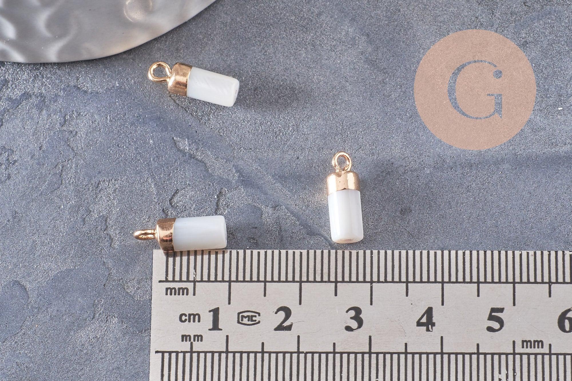 Agregue un toque de elegancia moderna y atemporal a sus creaciones con este colgante en forma de columna, hecho de nácar blanco natural y engastado en un marco de latón dorado.