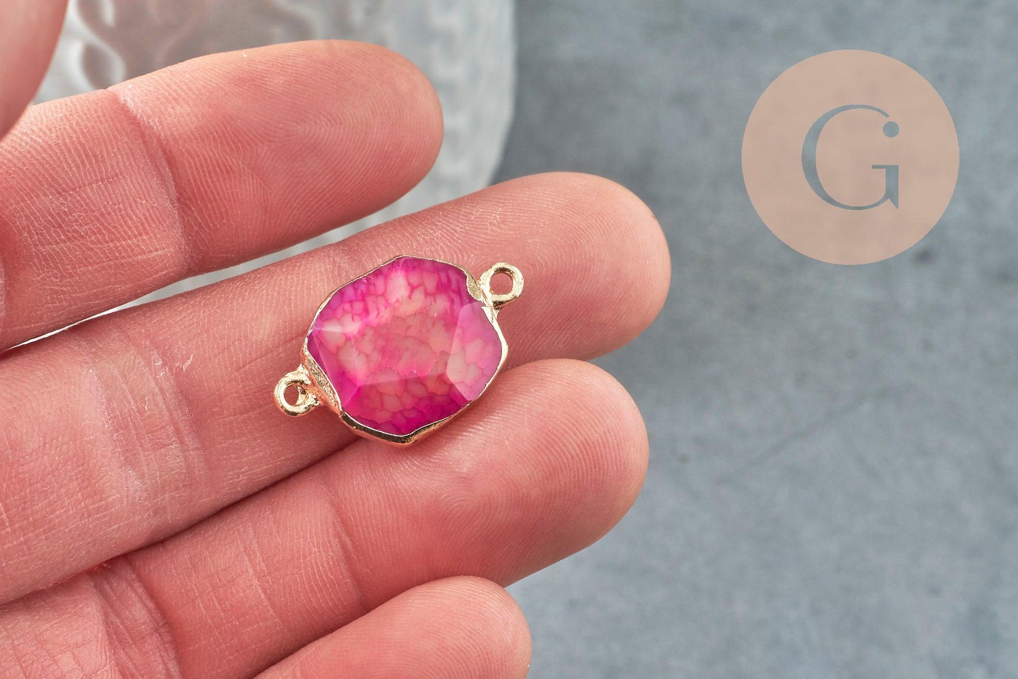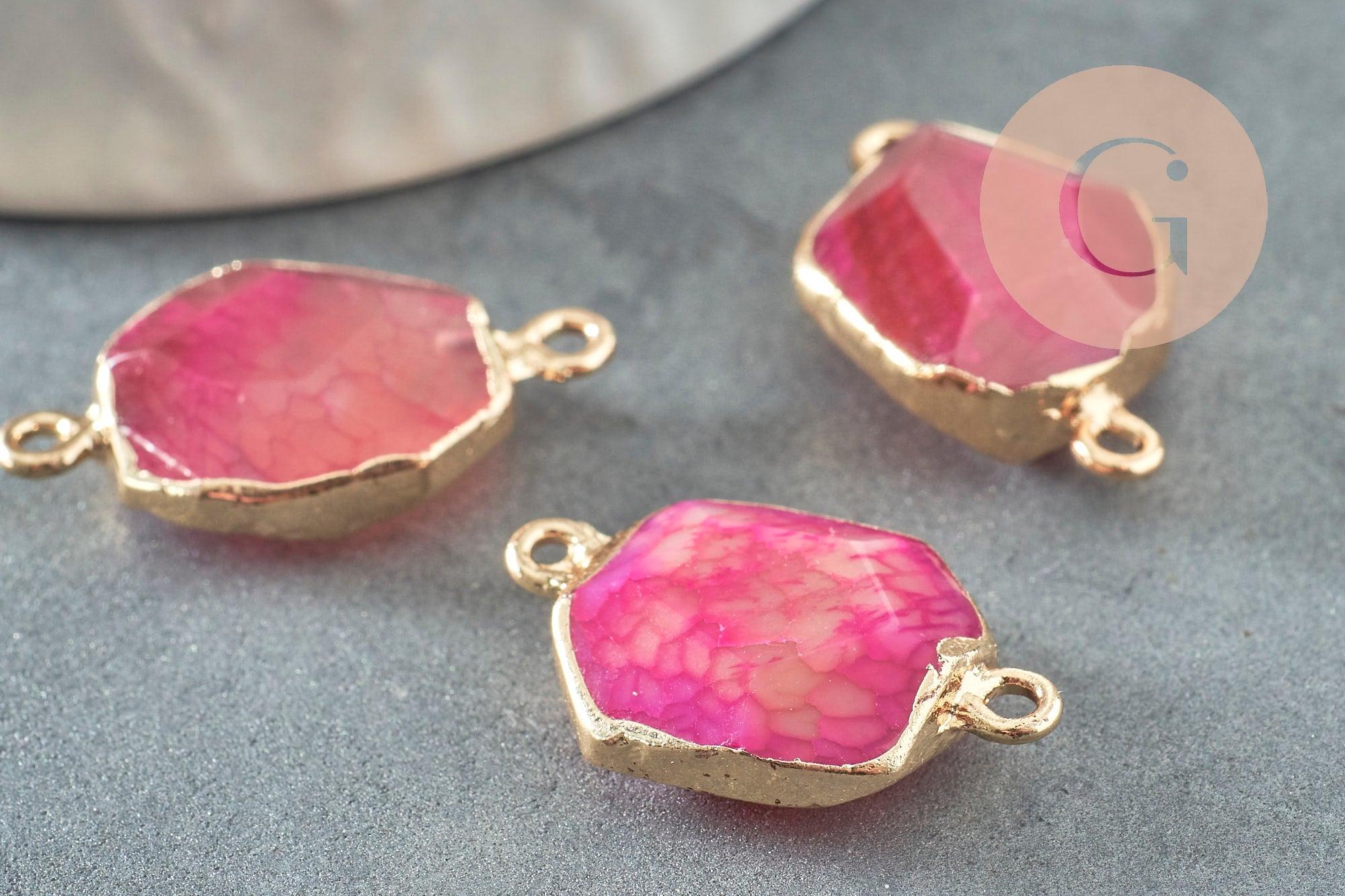 Pendentif connecteur agate naturelle teintée rose fer doré 25mm,création bijoux pierre naturelle, x1 G5707