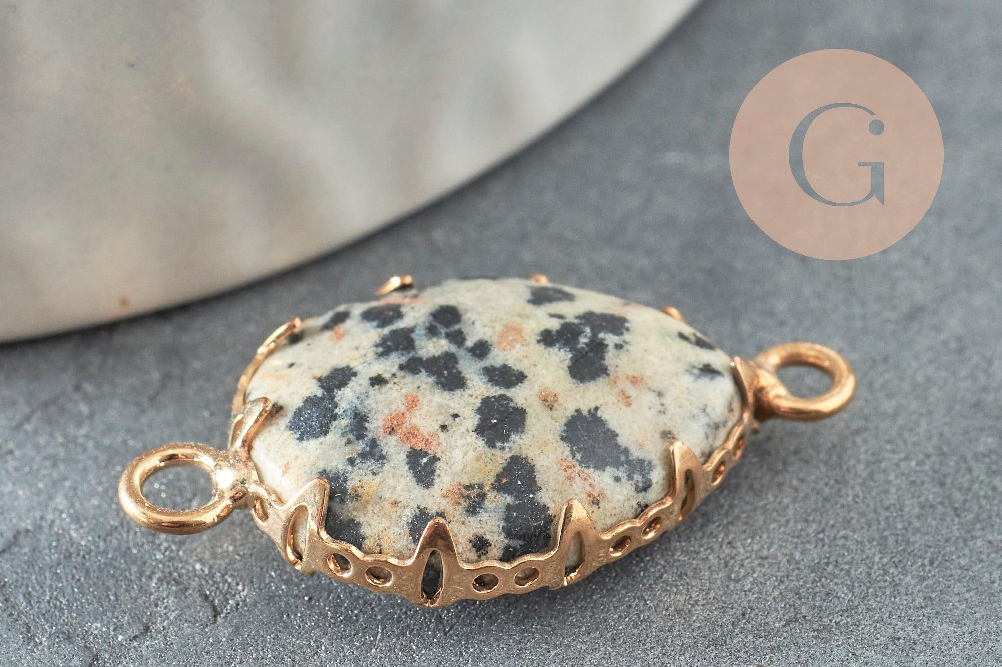 Pendentif connecteur jaspe dalmatien naturel laiton doré 27mm, x1 (G3795)