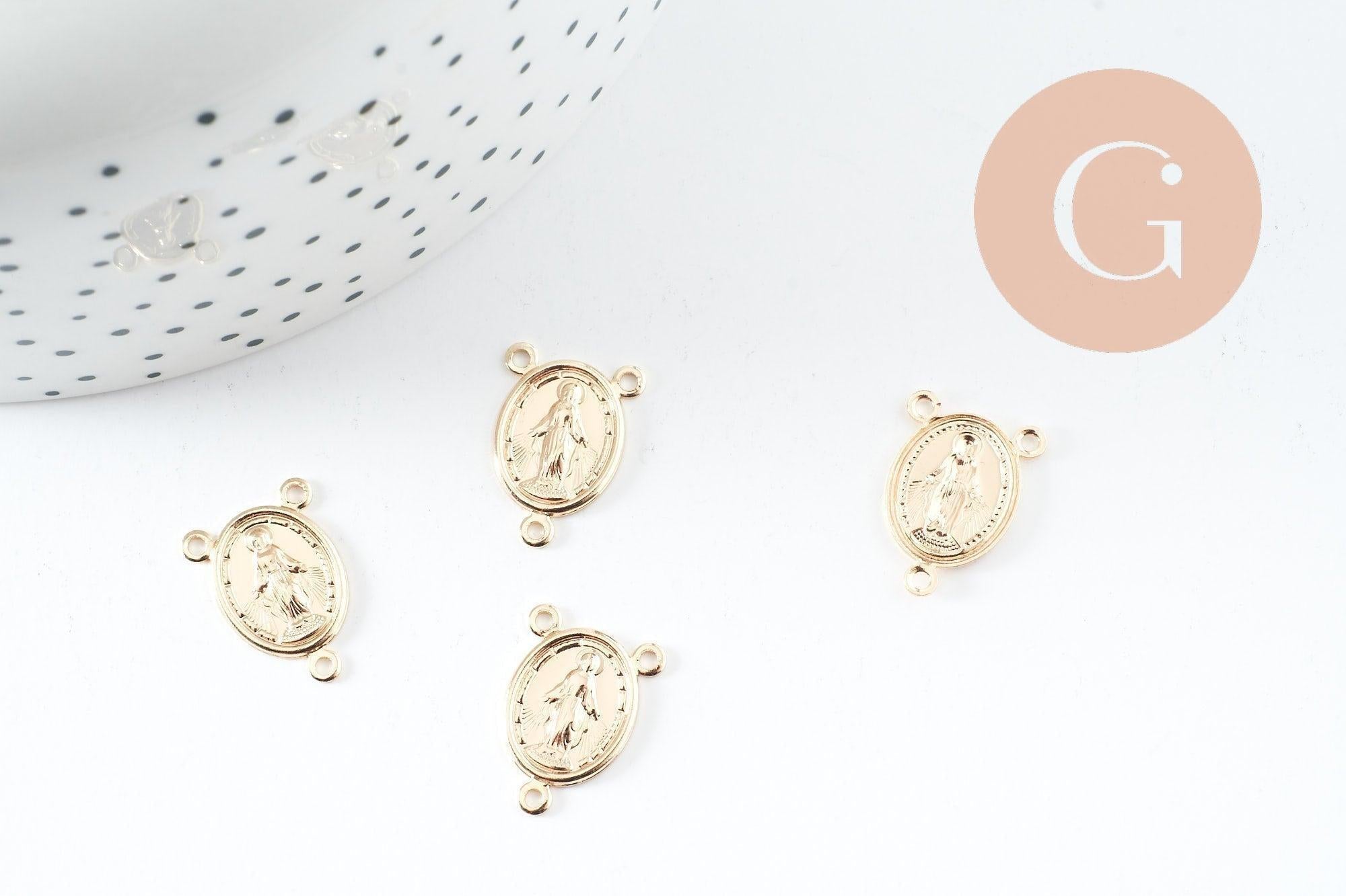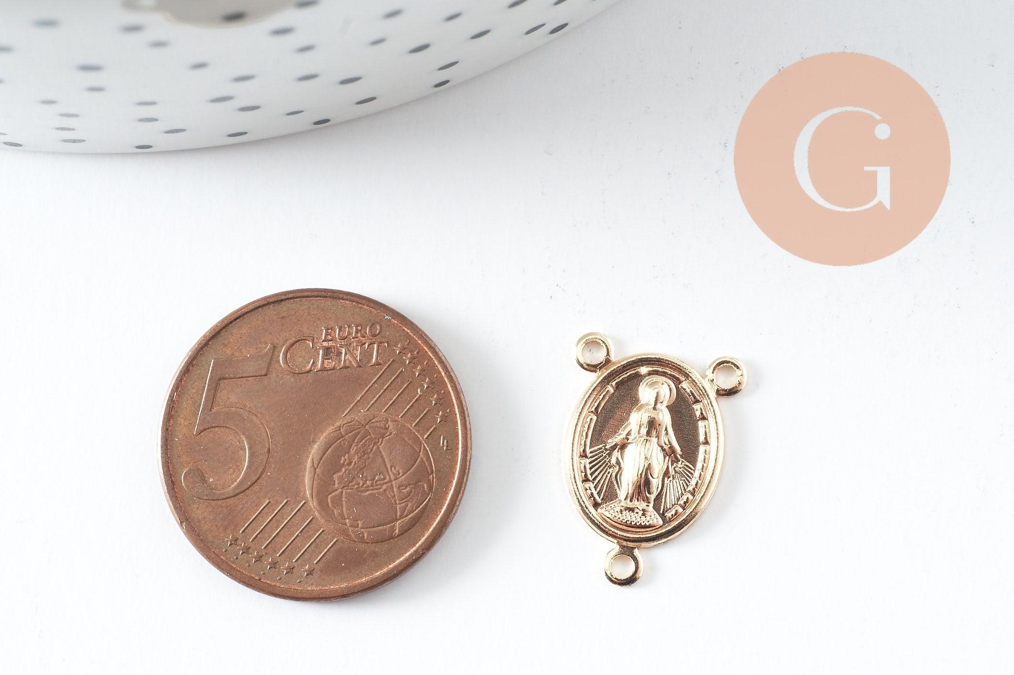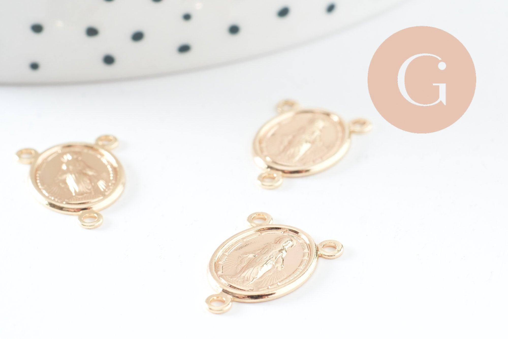 Pendentif connecteur médaille ovale Vierge Marie or 18K 17mm, pendentif 3 anneaux notre dame madonne, x5 (G10042)