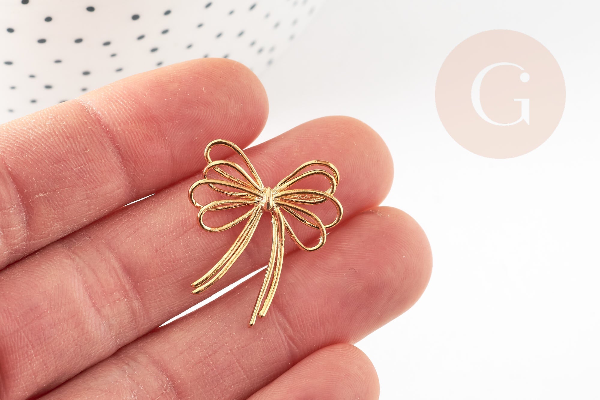 Con este delicado colgante con conector de pajarita en latón chapado en oro de 16 quilates , agregue un toque de ternura a sus creaciones de joyería. Es perfecto para utilizarlo como colgante de collar o para crear pendientes. Hecho...