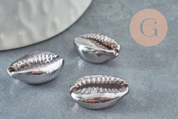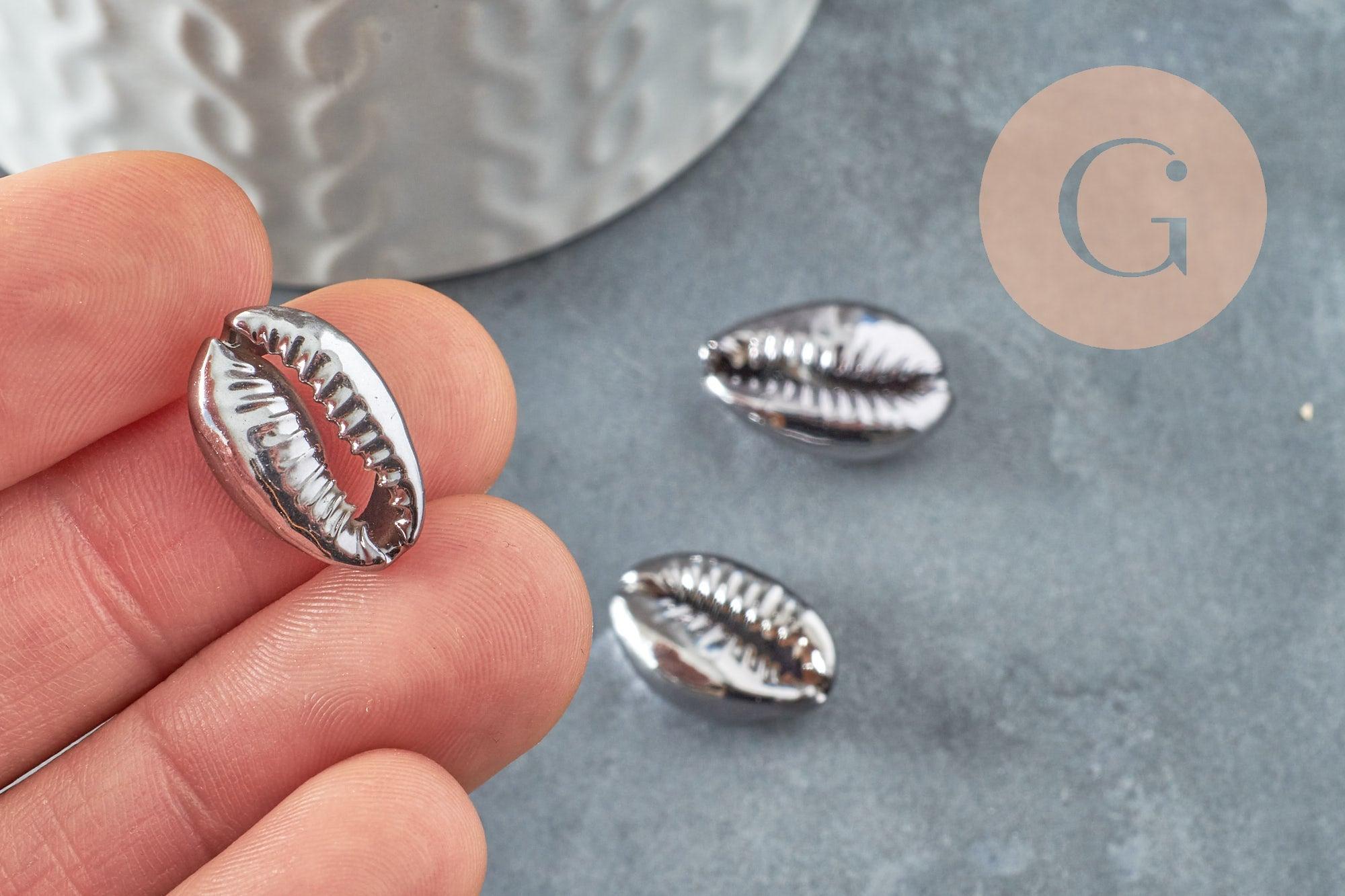 Colgante de concha cauri Metalgun, concha natural, cauri negra, creación de joyas, joyería de concha, 15 mm, x5 (G1231)