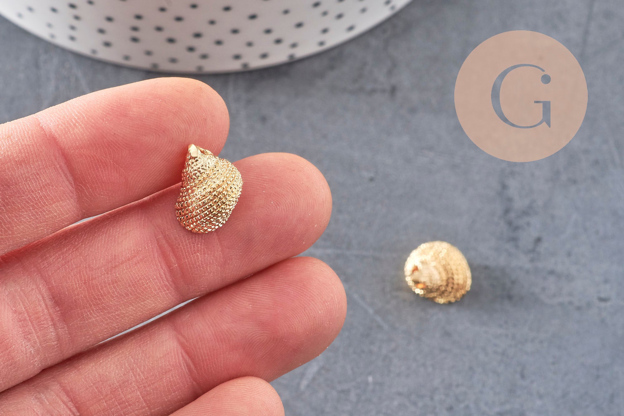 Pendentif coquillage doré 14K, coquillage or,création bijoux,14mm, x2 (G1984)