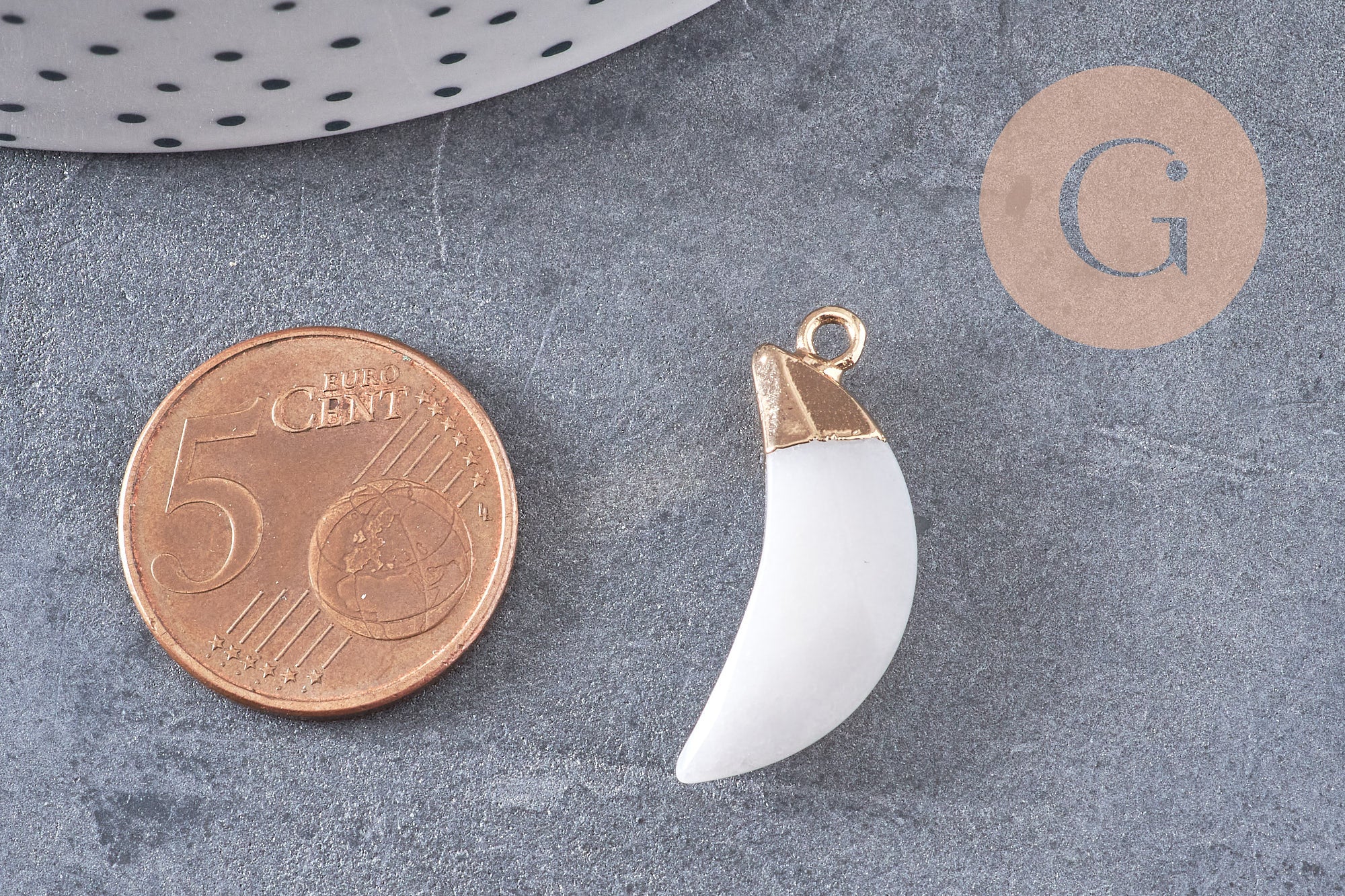Déjate seducir por este pequeño colgante de piedra Luna con su soporte dorado .