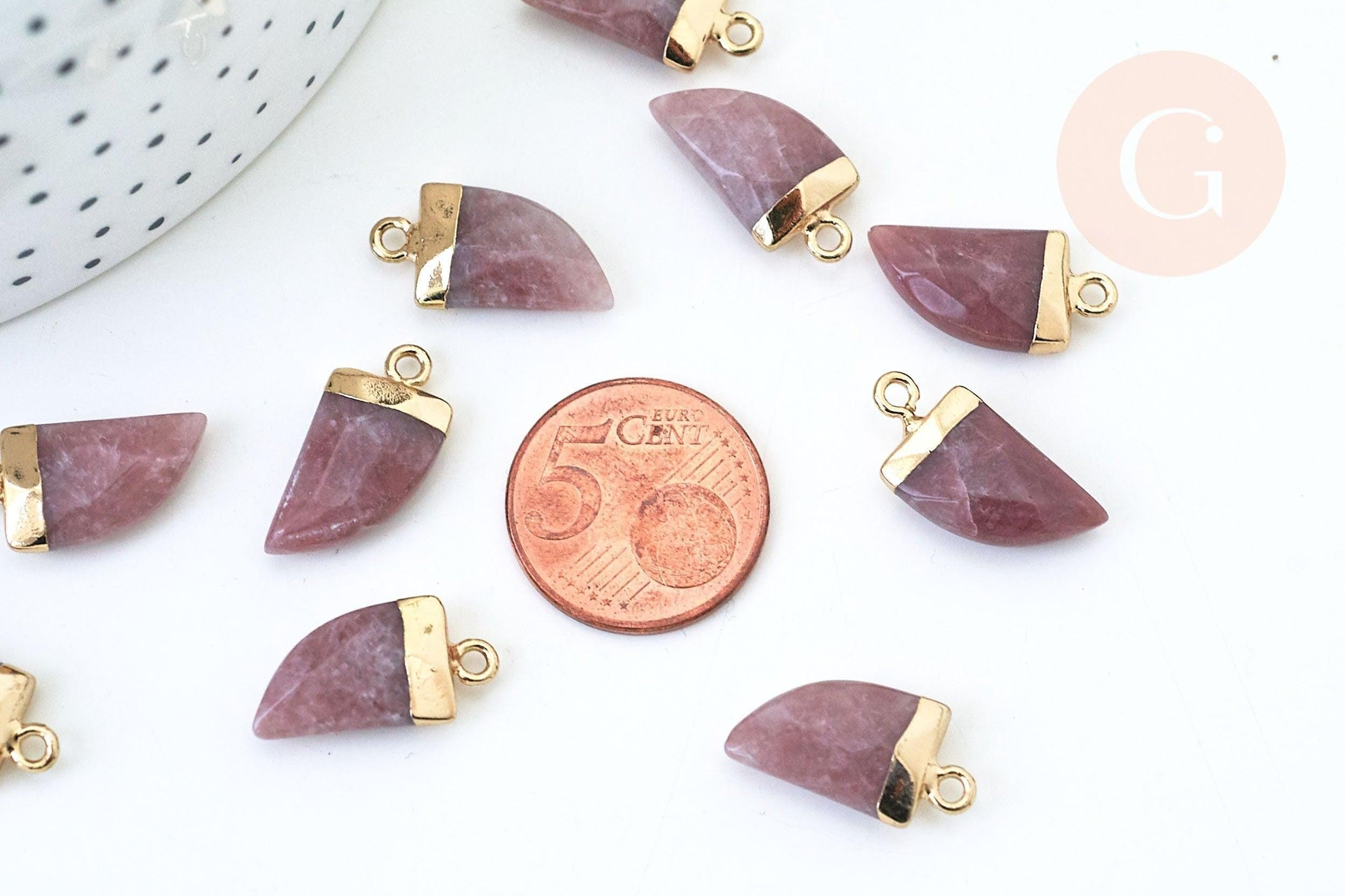 Pendentif corne quartz fraise transparent, pendentif bijoux, quartz fraise naturel,20mm, x1 (G5507)