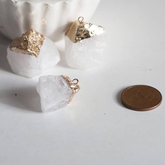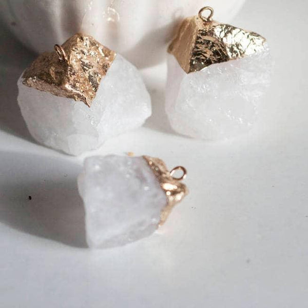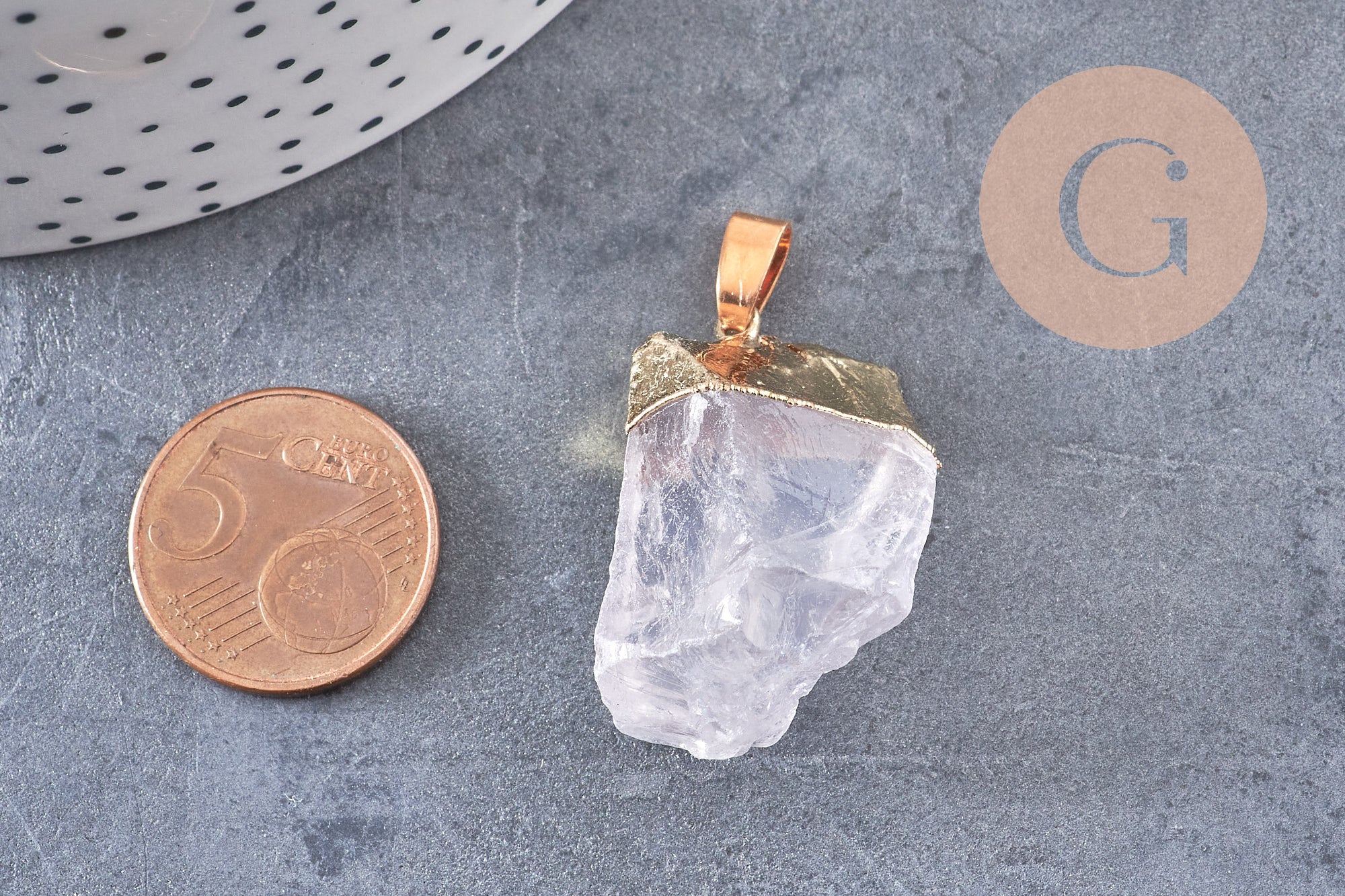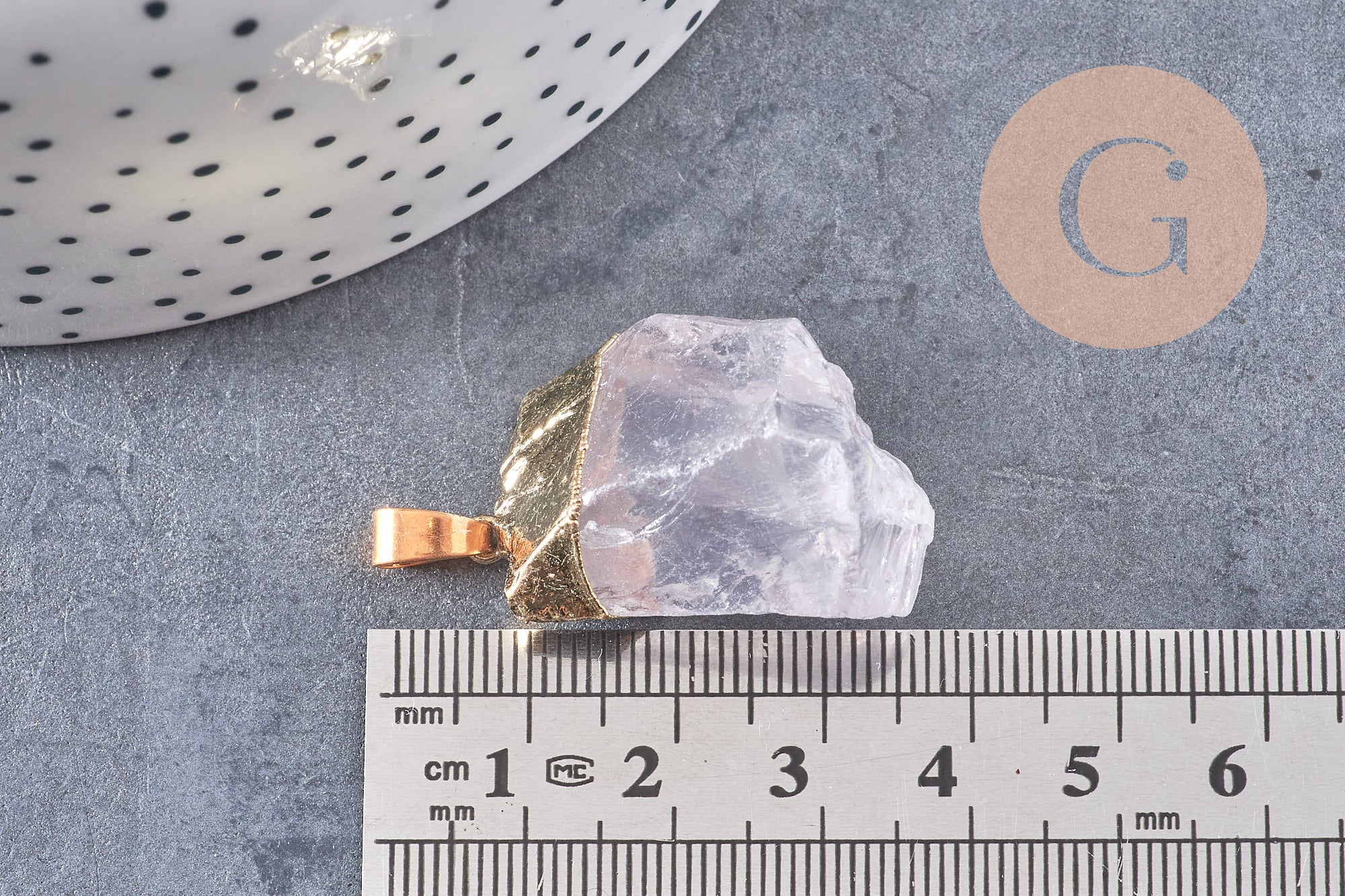 Colgante de cristal de cuarzo blanco con baño de oro y hierro, piedra natural en bruto para la elaboración de joyas, 1 unidad (G0838)