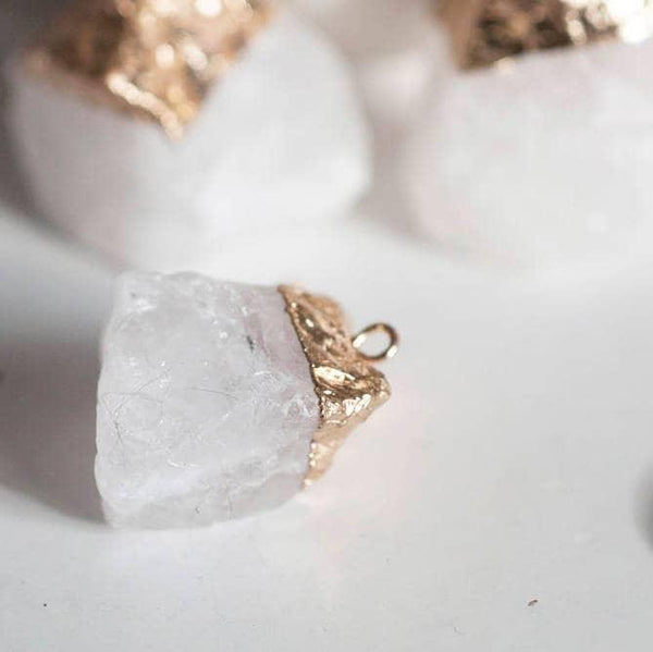 Déjese seducir por este colgante de cristal blanco natural con soporte dorado.