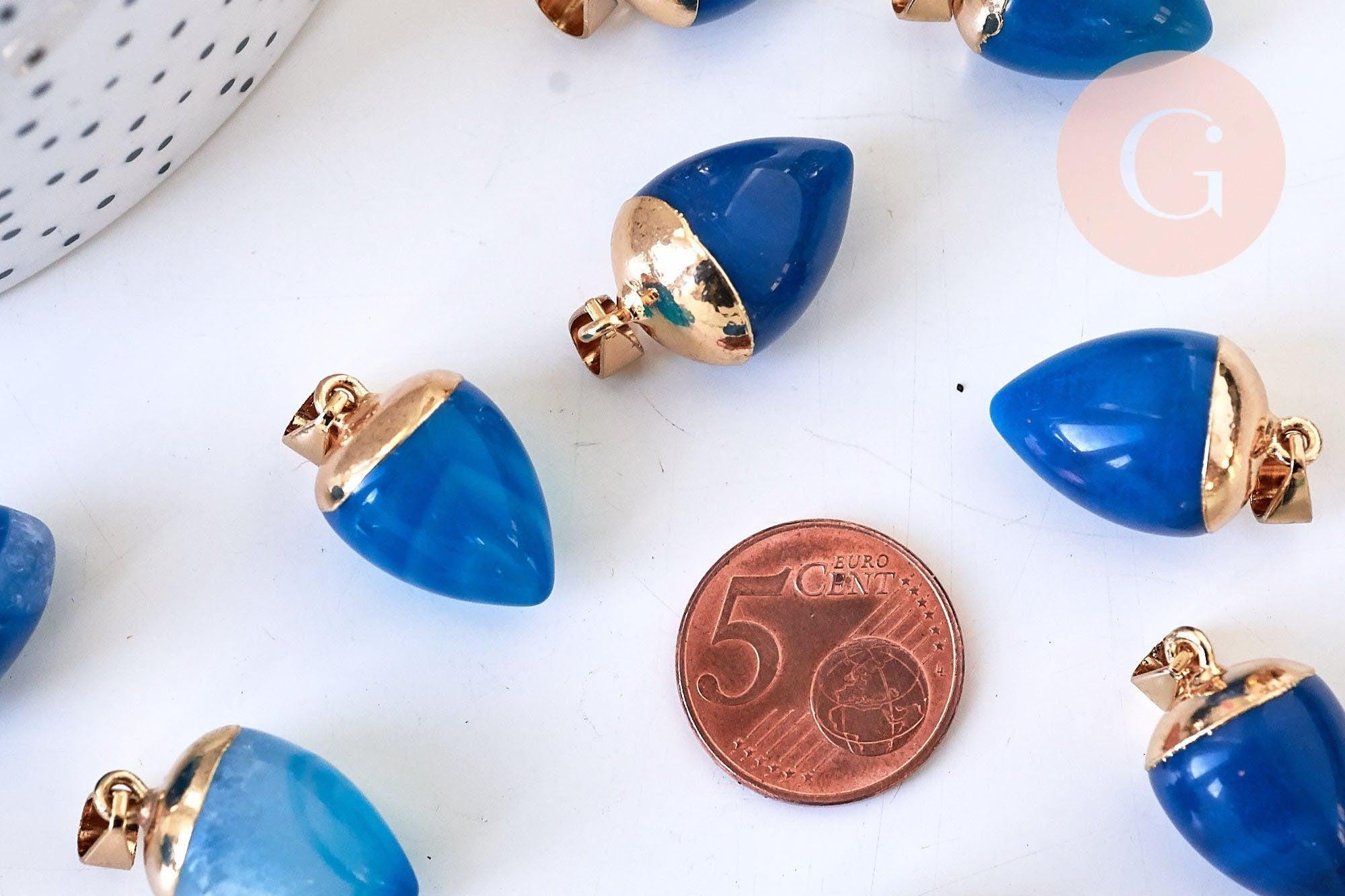 Déjate seducir por este colgante en forma de gota de ágata teñida de azul y con su soporte dorado.