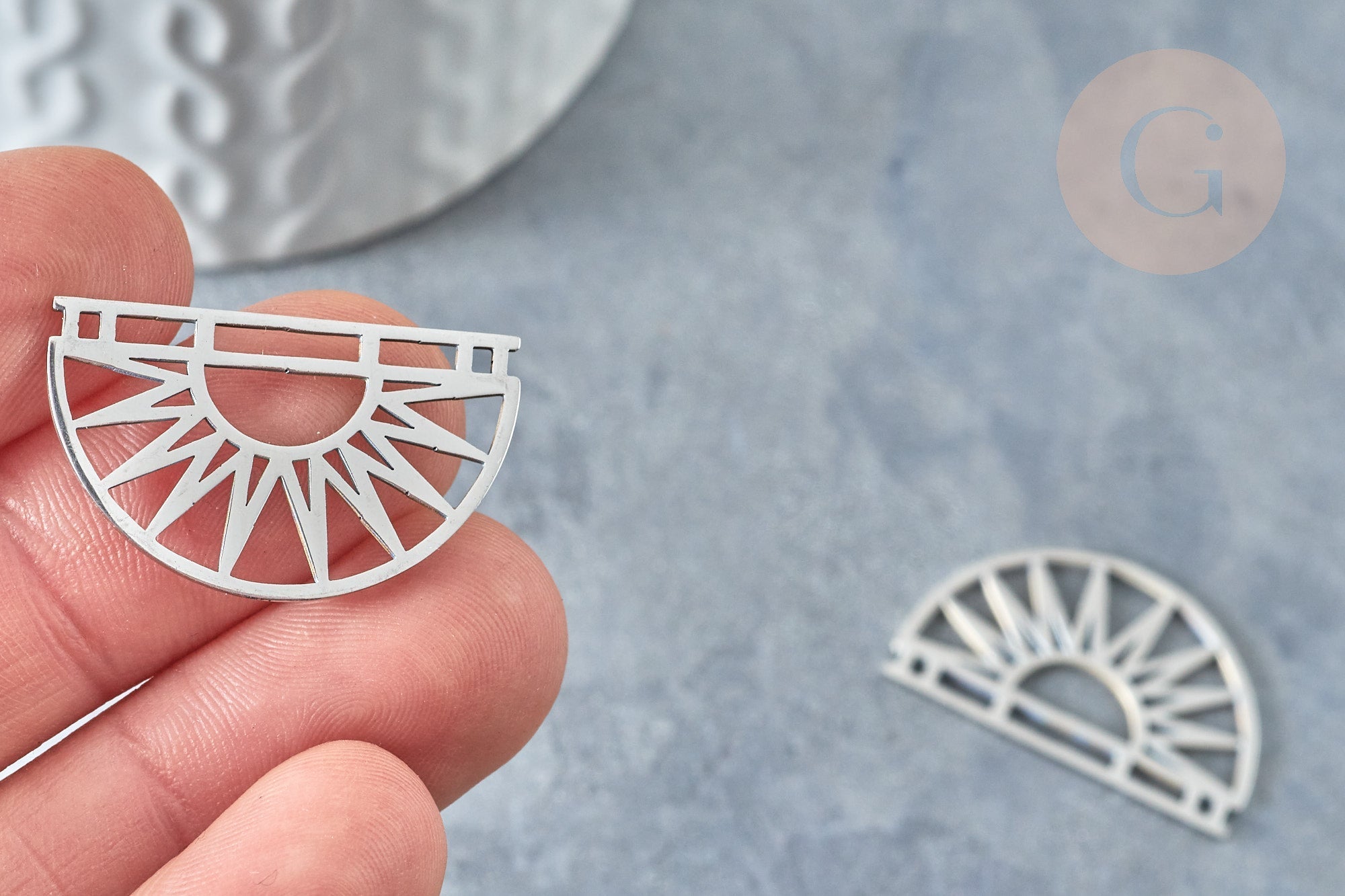 Colgante con conector solar en forma de semicírculo en acero inoxidable plateado. Un adorable colgante dorado para usar en todas tus creaciones de pulseras y collares.