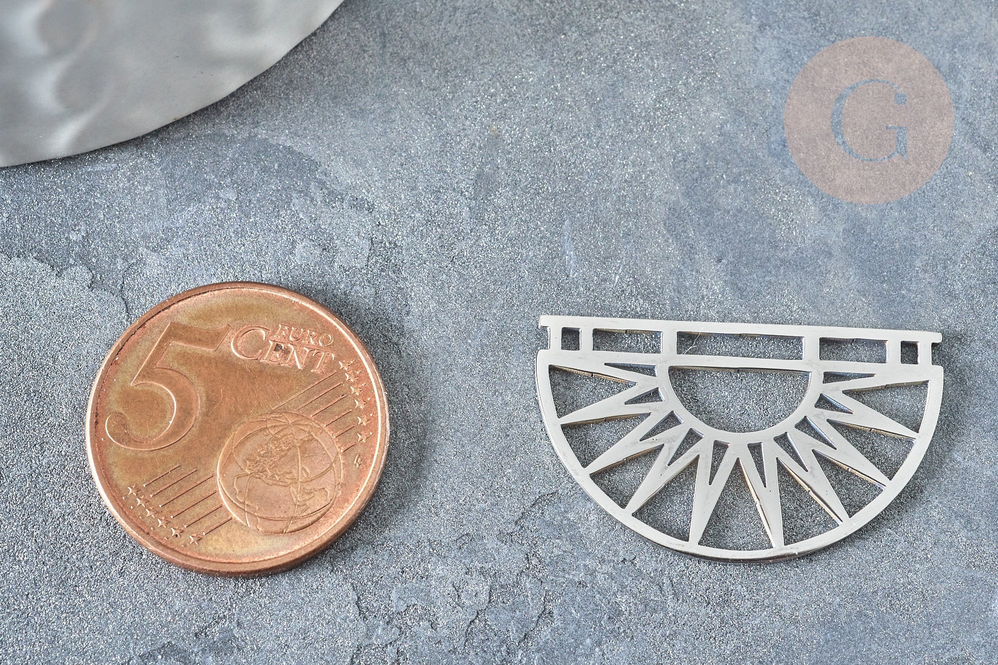 Colgante de sol semicírculo de acero inoxidable plateado 17,5 mm, creación de joyería de acero inoxidable platino, x1 G7666