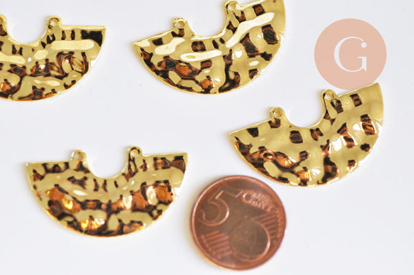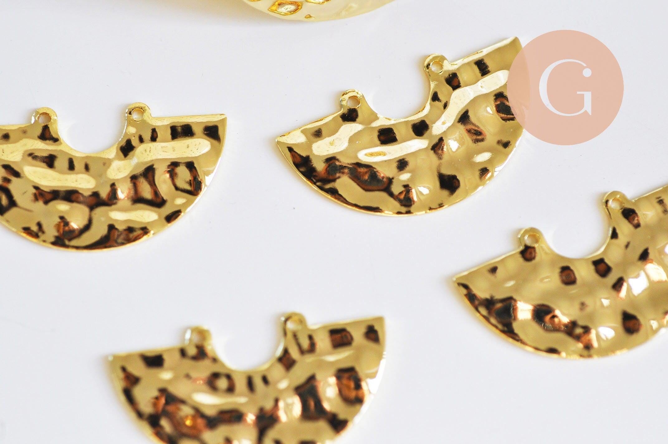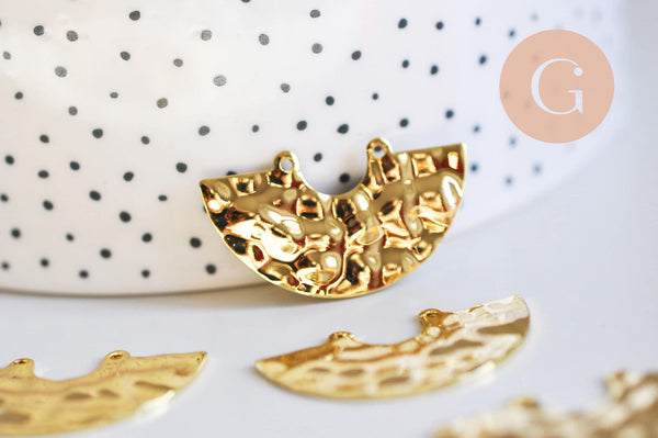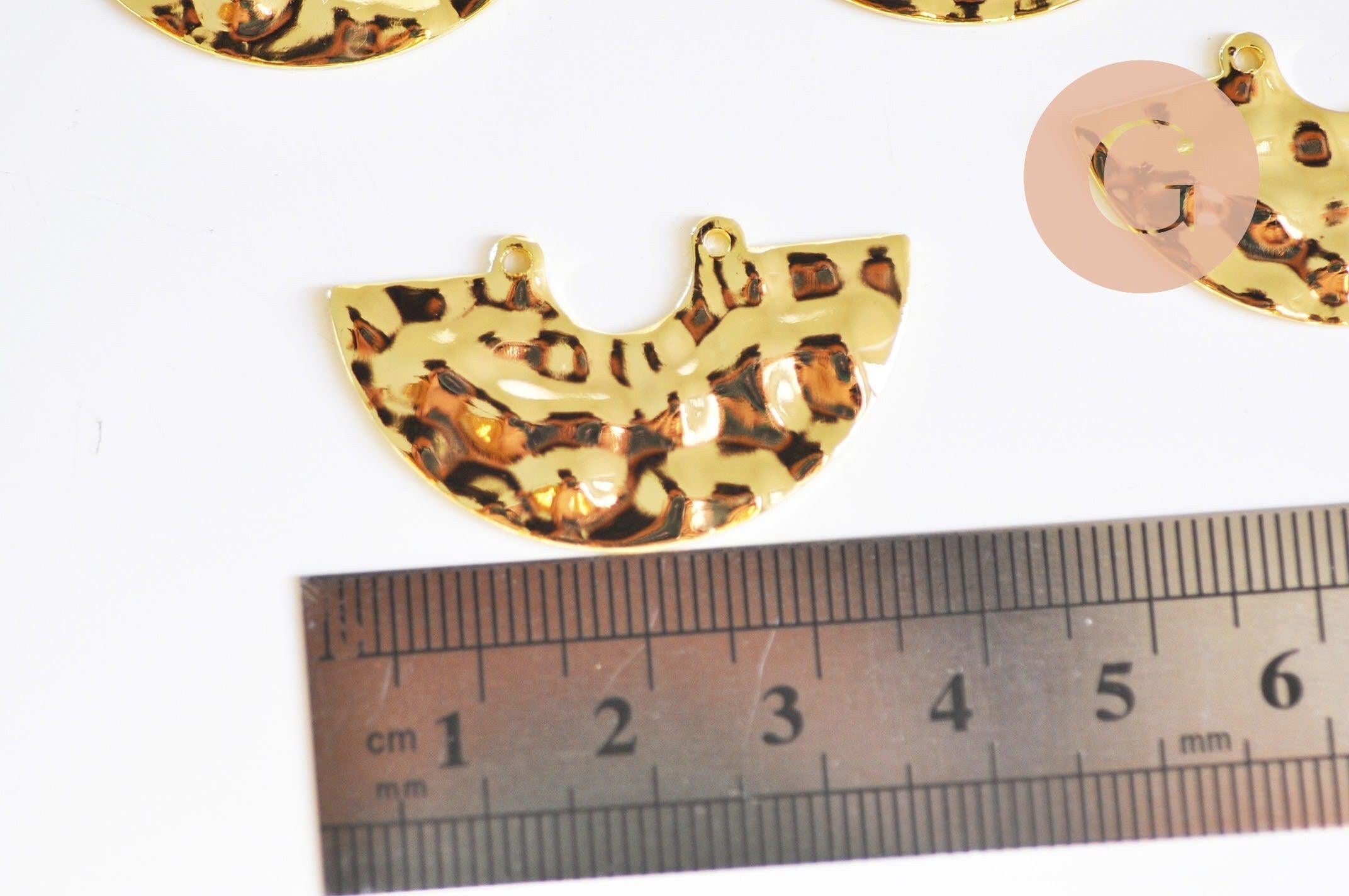 Colgante de medio círculo texturizado de latón chapado en oro de 18 quilates de 20 mm, un colgante chapado en oro para hacer joyas, x1 (G6261)
