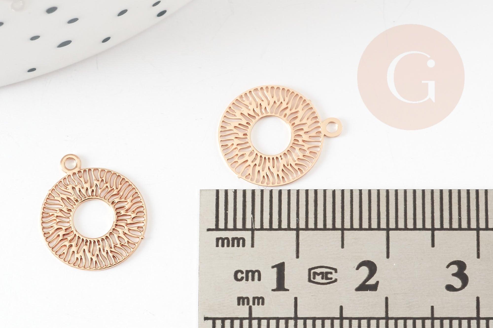 Con estos delicados colgantes con filigrana estampada en forma de flor de rosa de latón bañado en oro claro de 14 mm, agregue un toque floral a sus creaciones de joyería de oro.