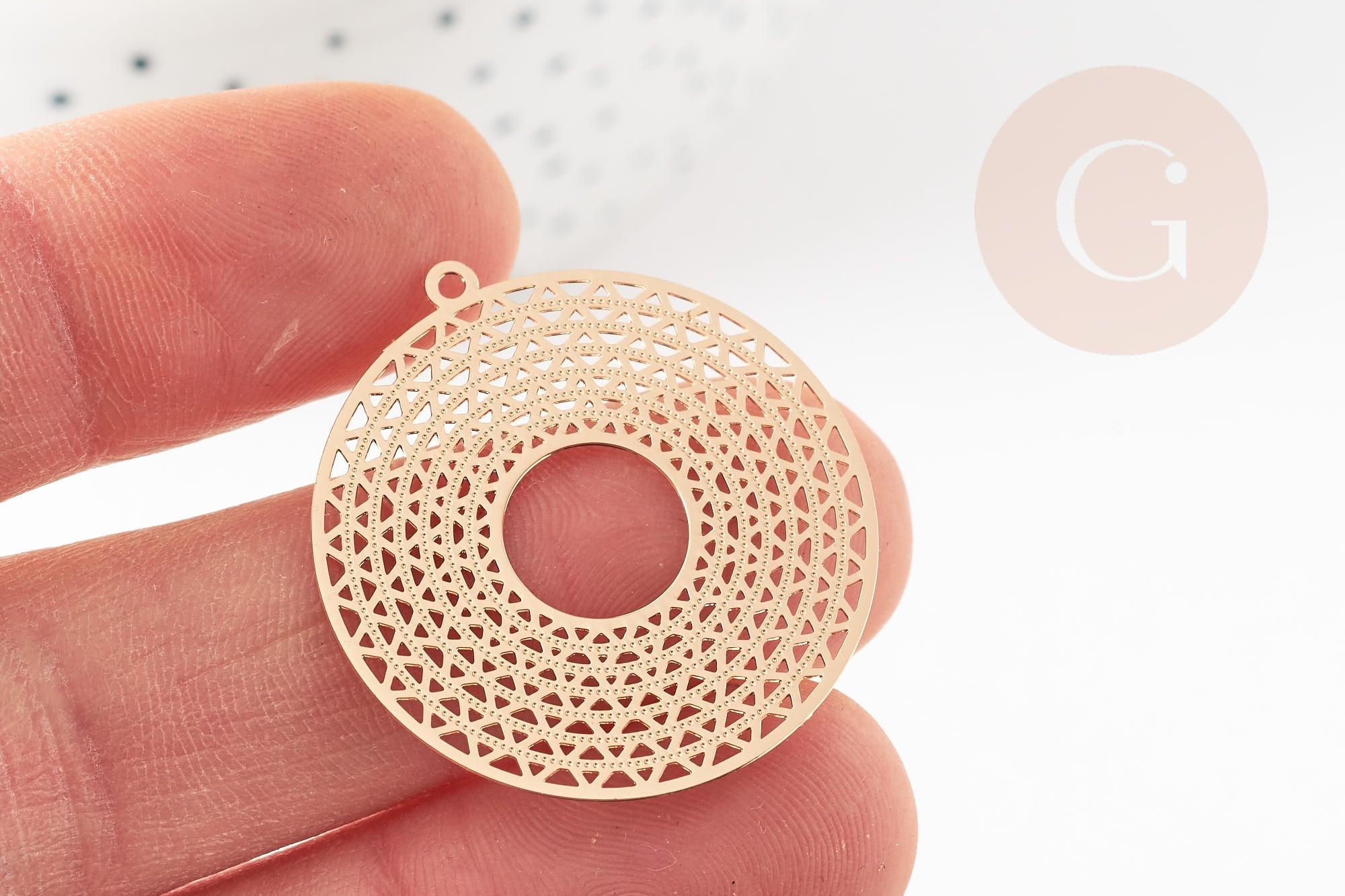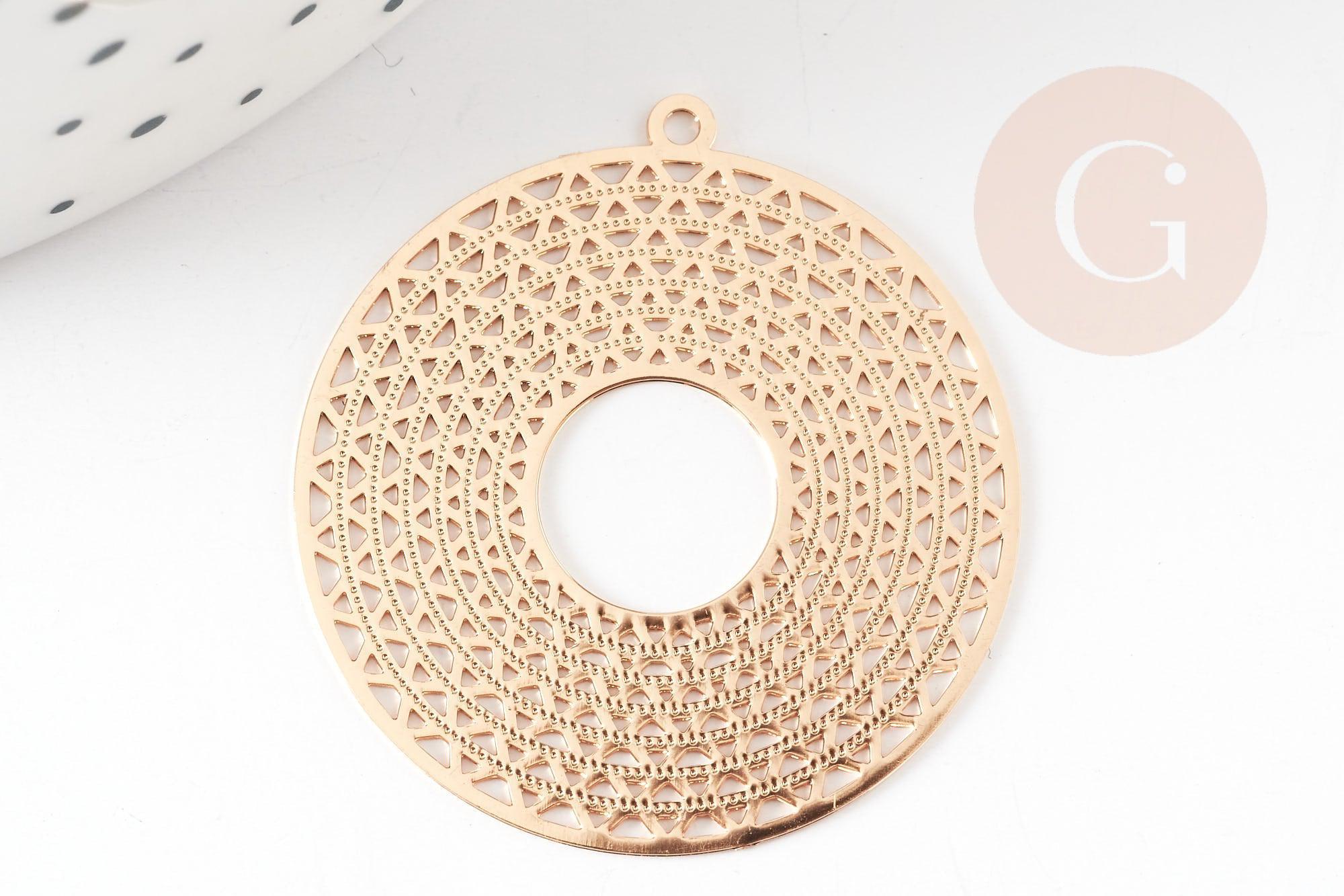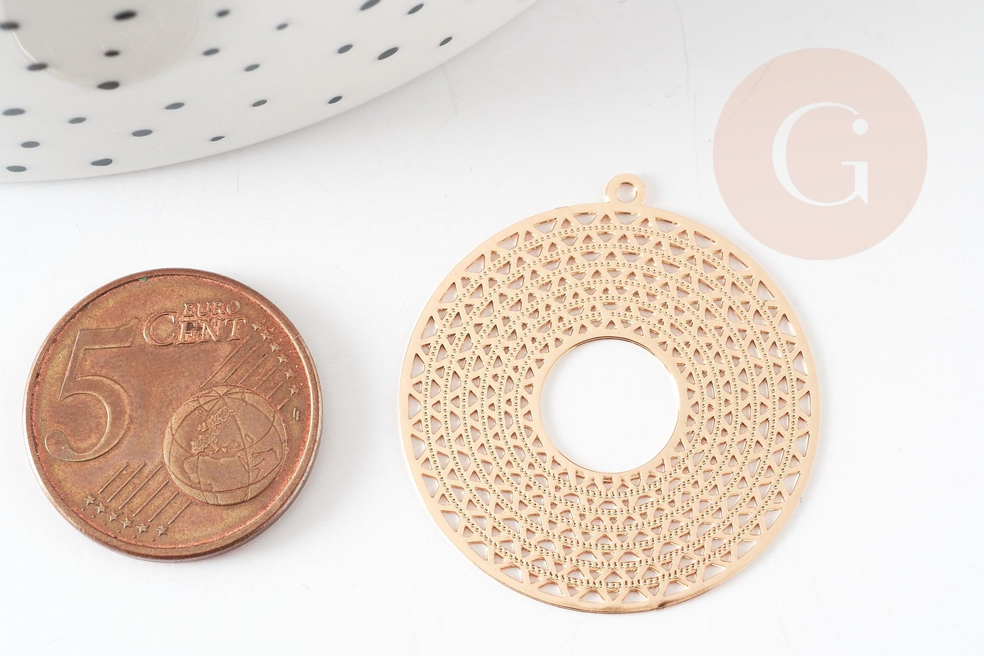 Pendentif estampe filigrane rond géométrique évidé laiton doré 32.5mm, Pendentif très fin et léger pour création de bijoux, x2 G9274