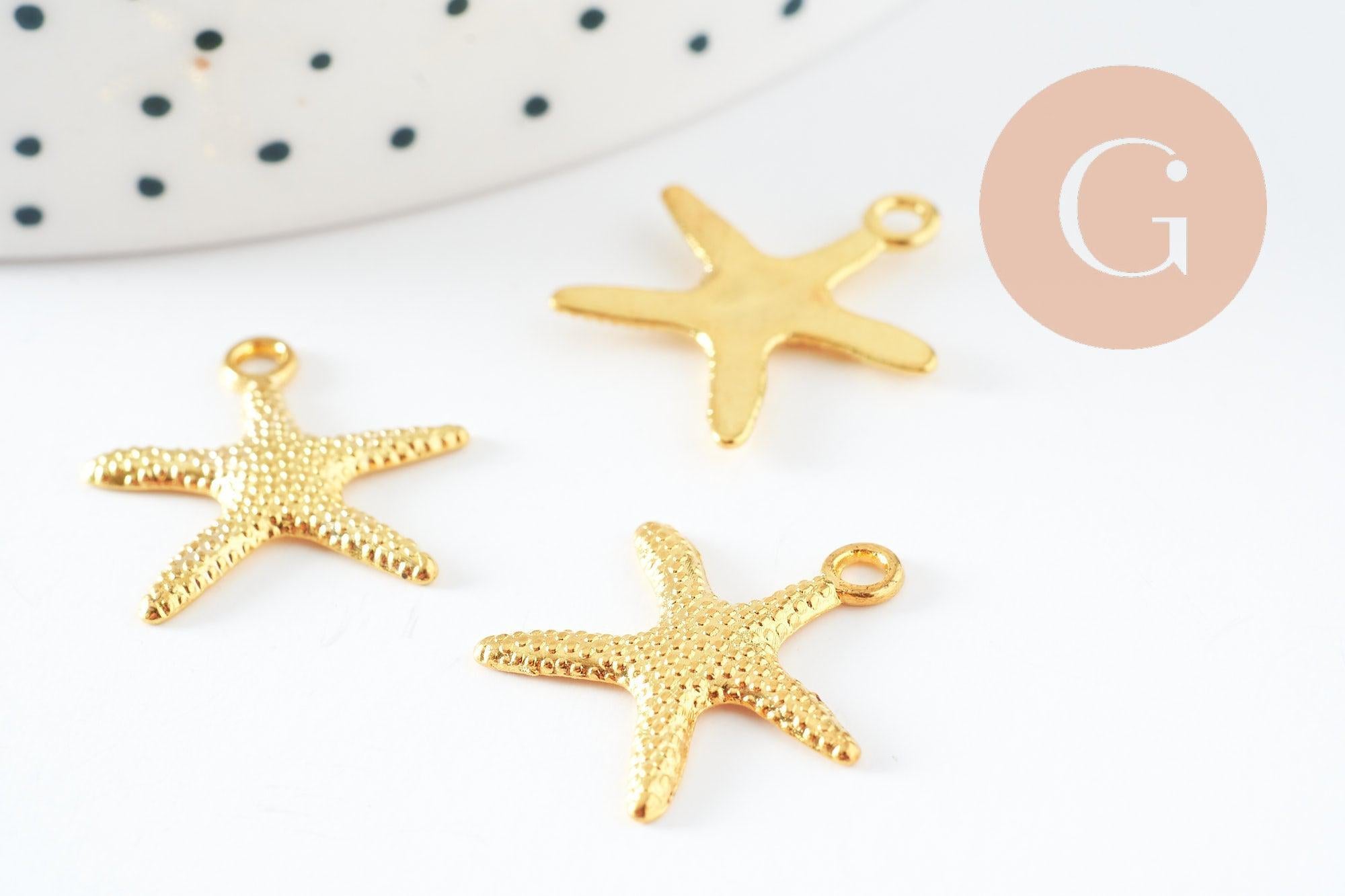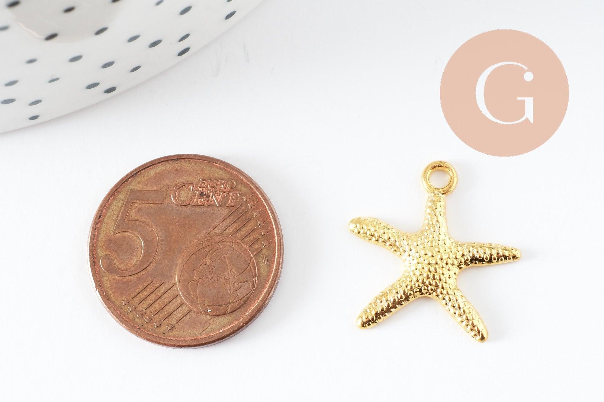 Pendentif étoile de mer dorée, pendentif laiton doré,19mm, x10 (G0550)