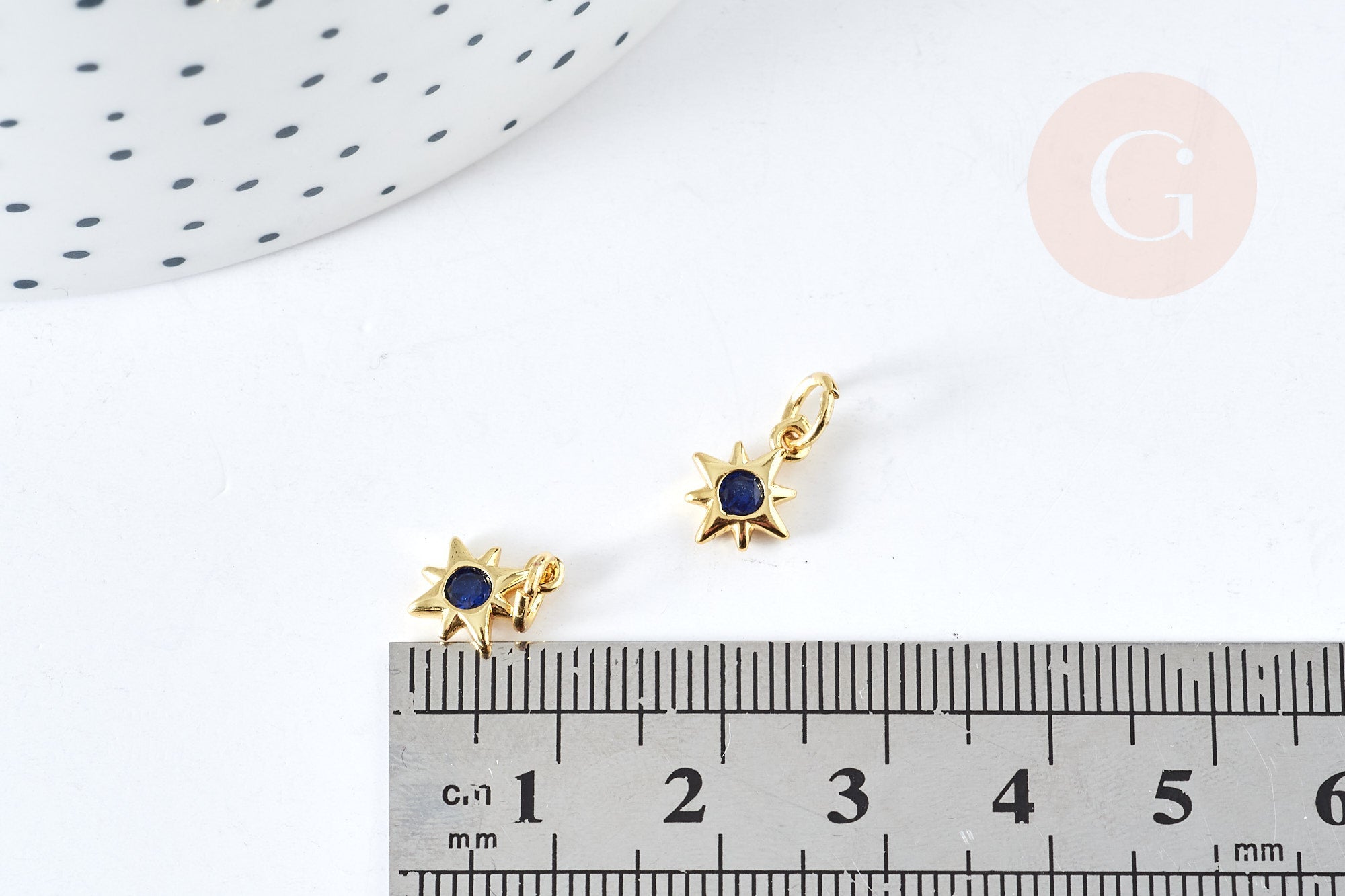Colgante de estrella de latón chapado en oro de 18 quilates con cristal de circonio azul de 10 mm, creación de joya de constelación, x1 G8440