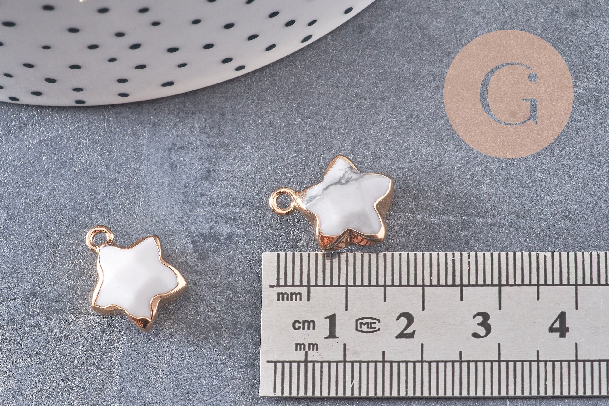 Déjate seducir por este pequeño colgante de estrella en howlita natural jaspeada con su soporte dorado.