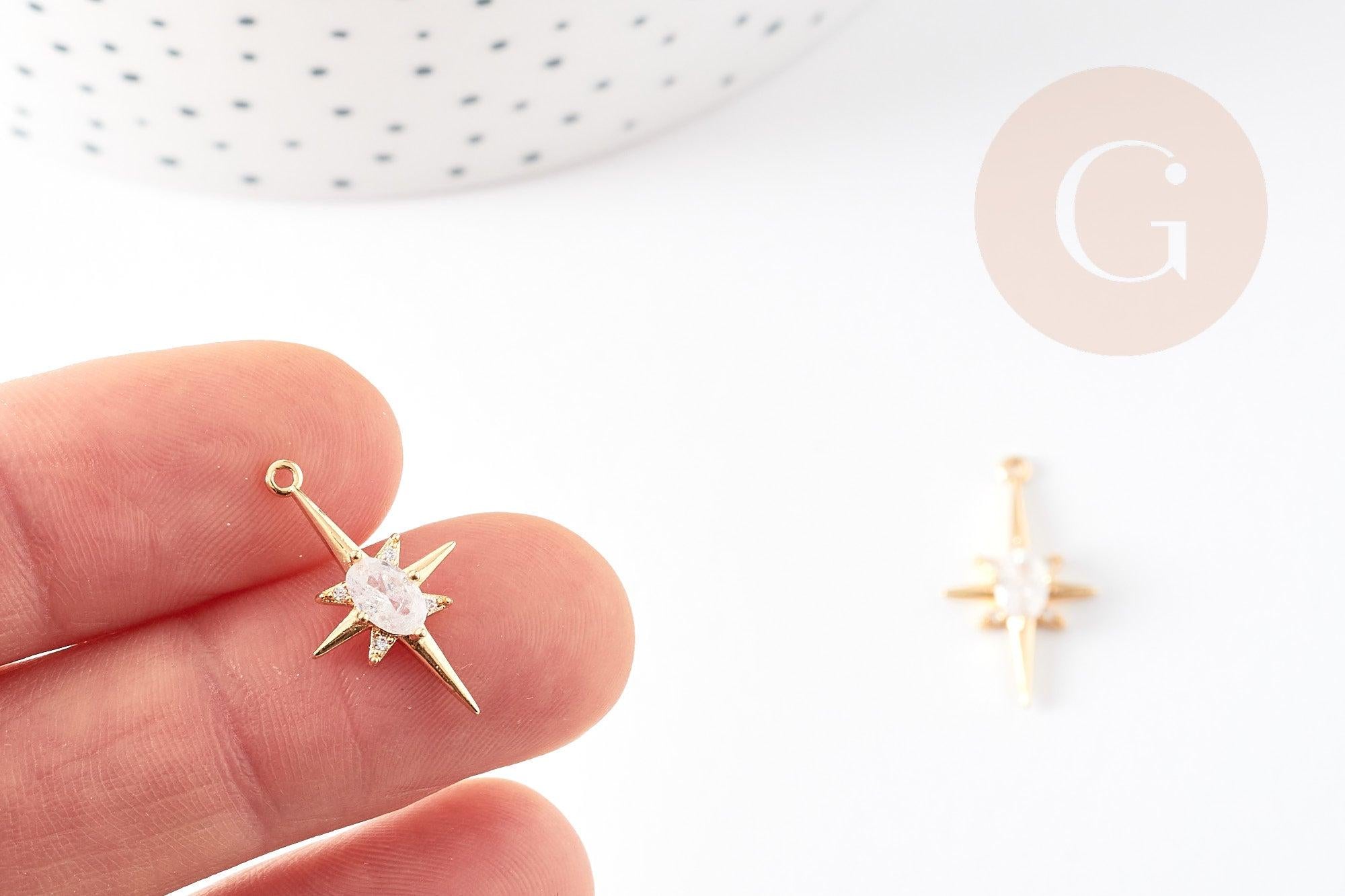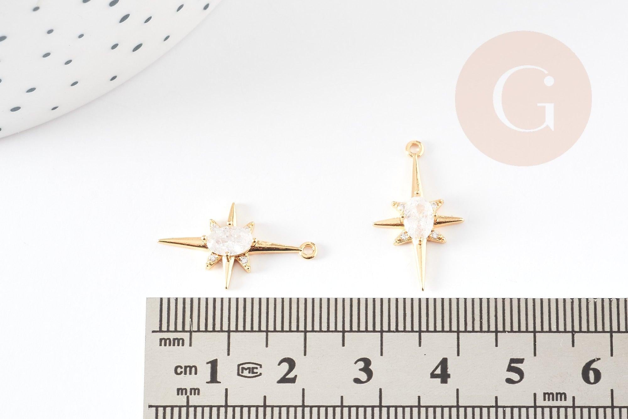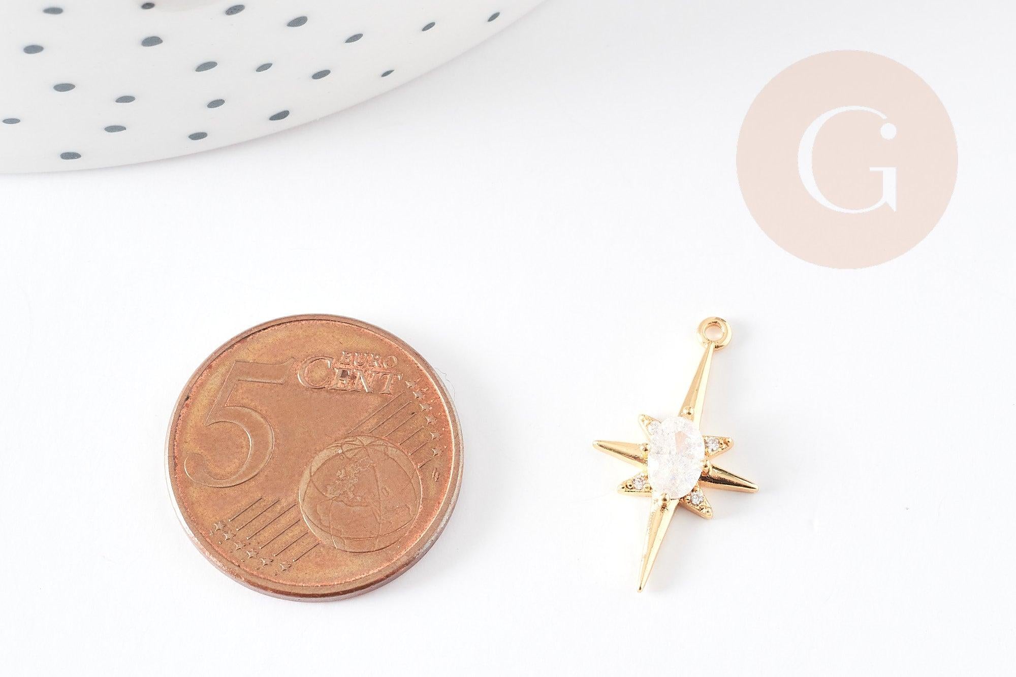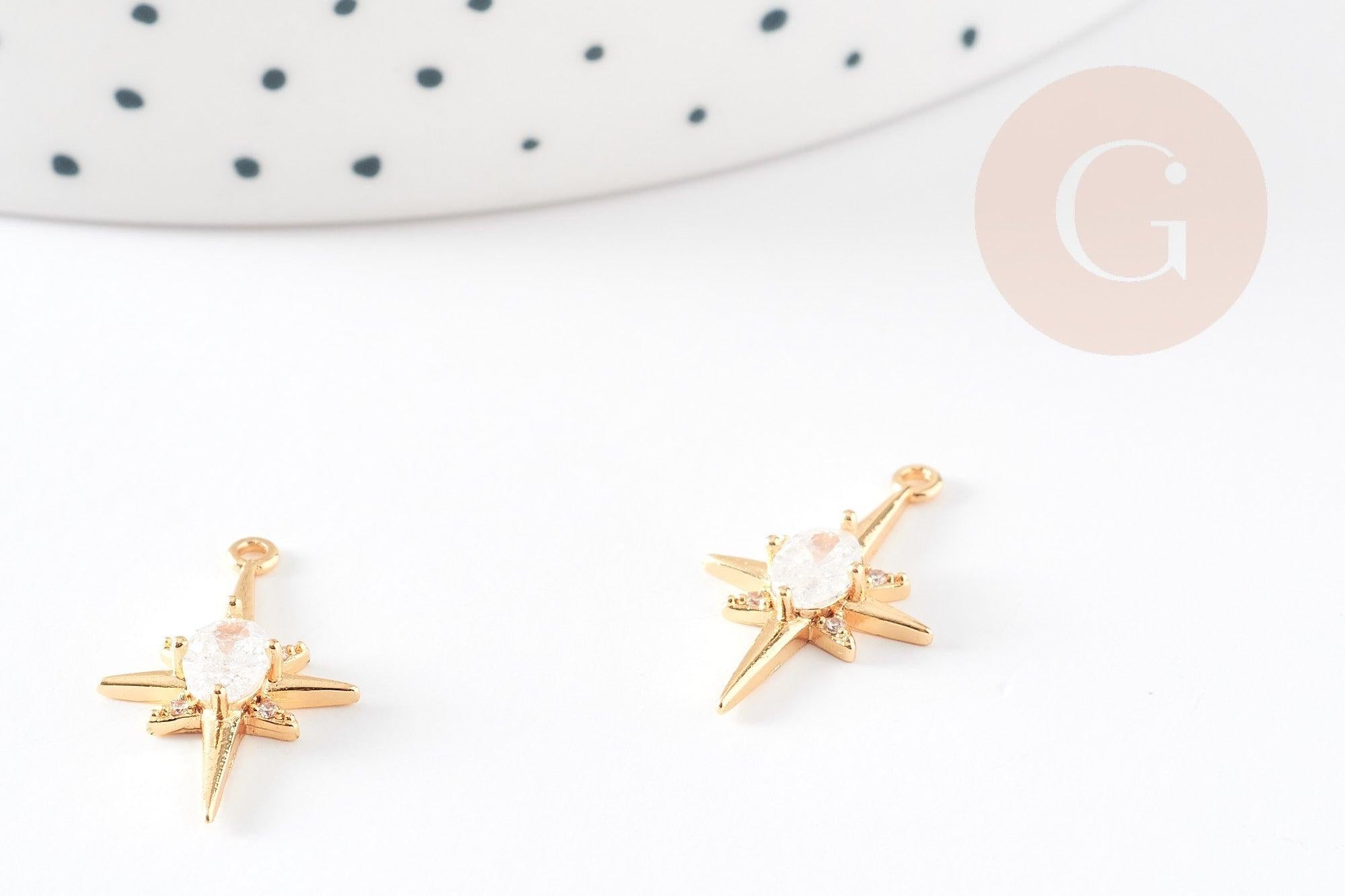 Pendentif étoile laiton doré 18K zircon, pendentif doré,porte-bonheur,bijou constellation,création bijoux,21.5mm, x1 G5246