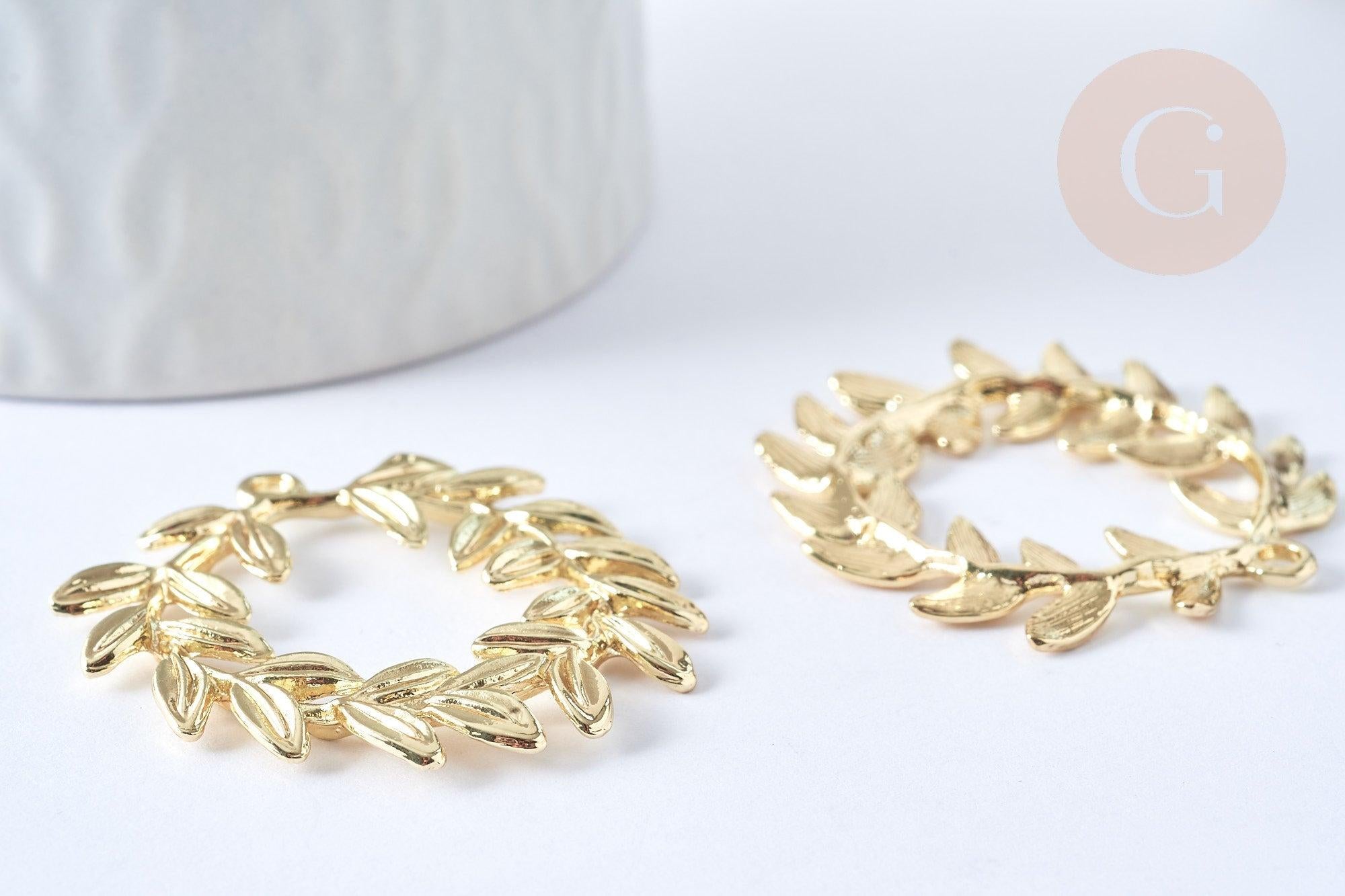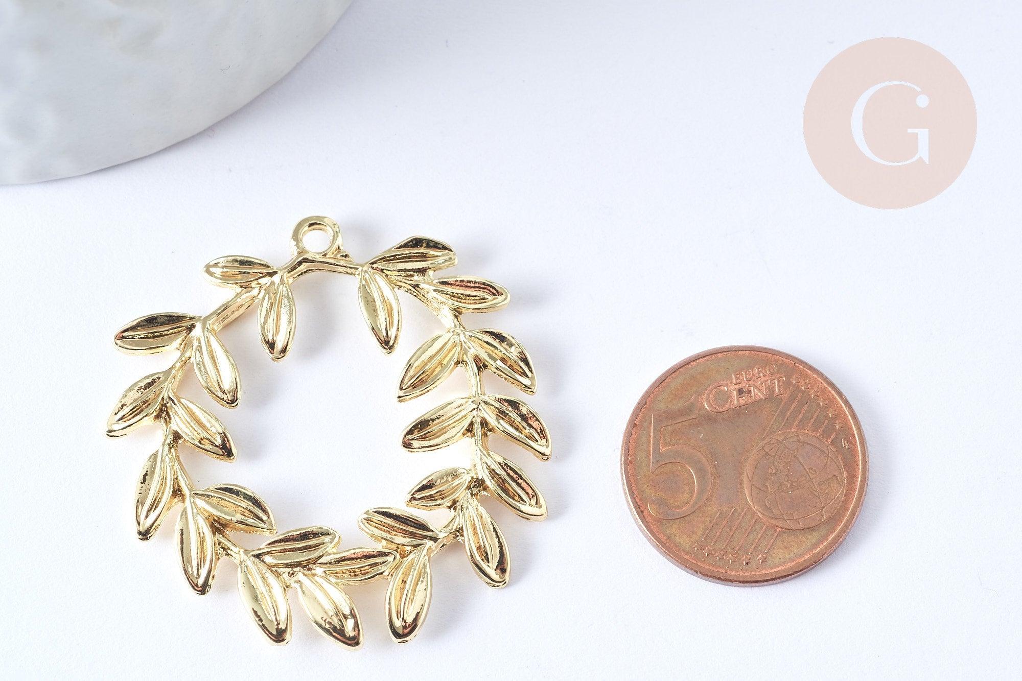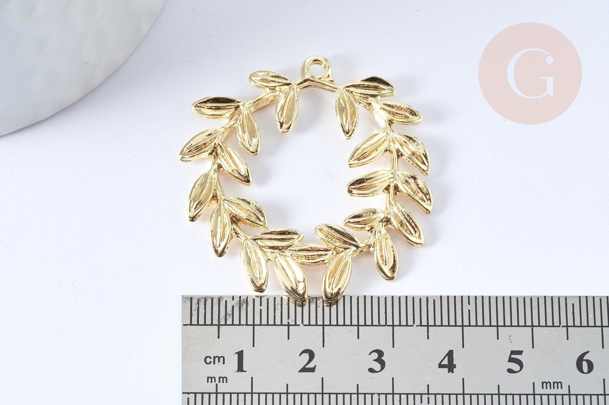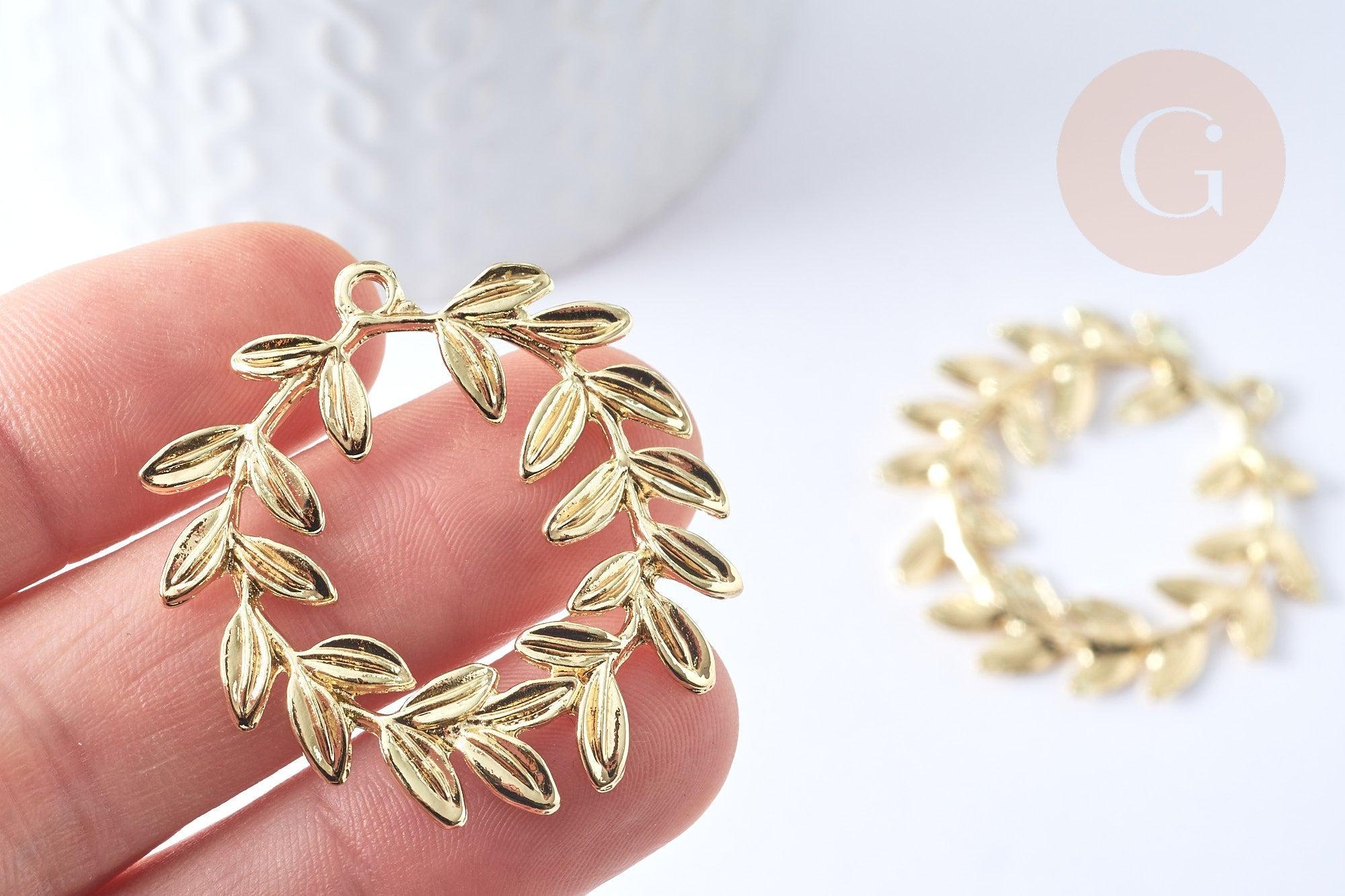 Colgante hoja de laurel zamac dorado, charm joyería latón, hoja de laurel joyería, colgante zamac oro 38mm, cada uno