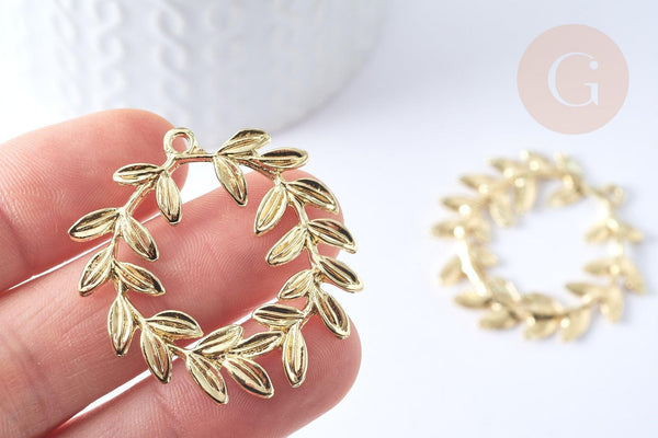 Colgante hoja de laurel zamac dorado, charm joyería latón, hoja de laurel joyería, colgante zamac oro 38mm, x1 G5311