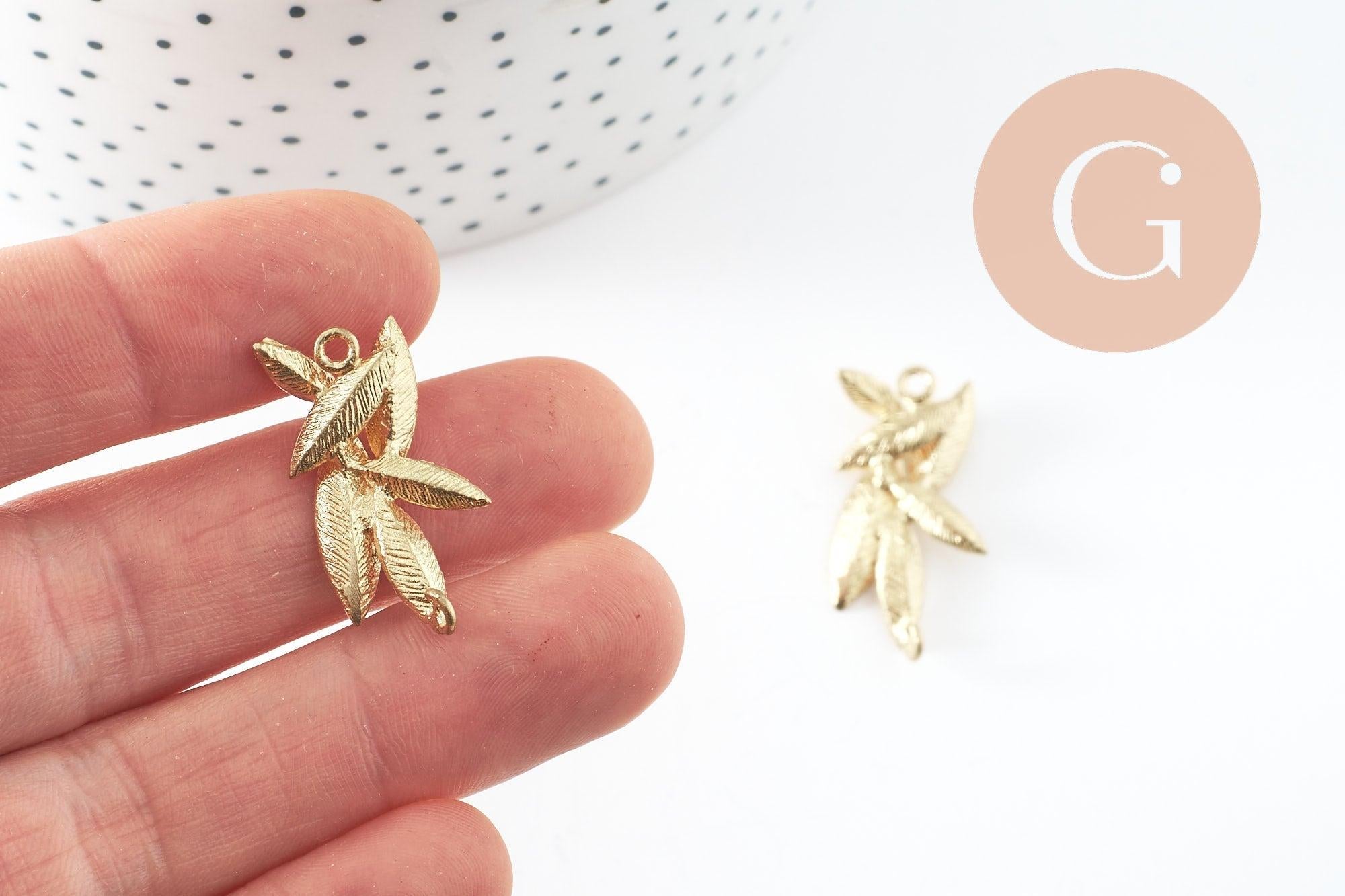 Colgante de hoja de latón, encanto de latón crudo, joyería de latón, hoja dorada para la creación de joyas, colgante de latón crudo, 27 mm, x2 G4559