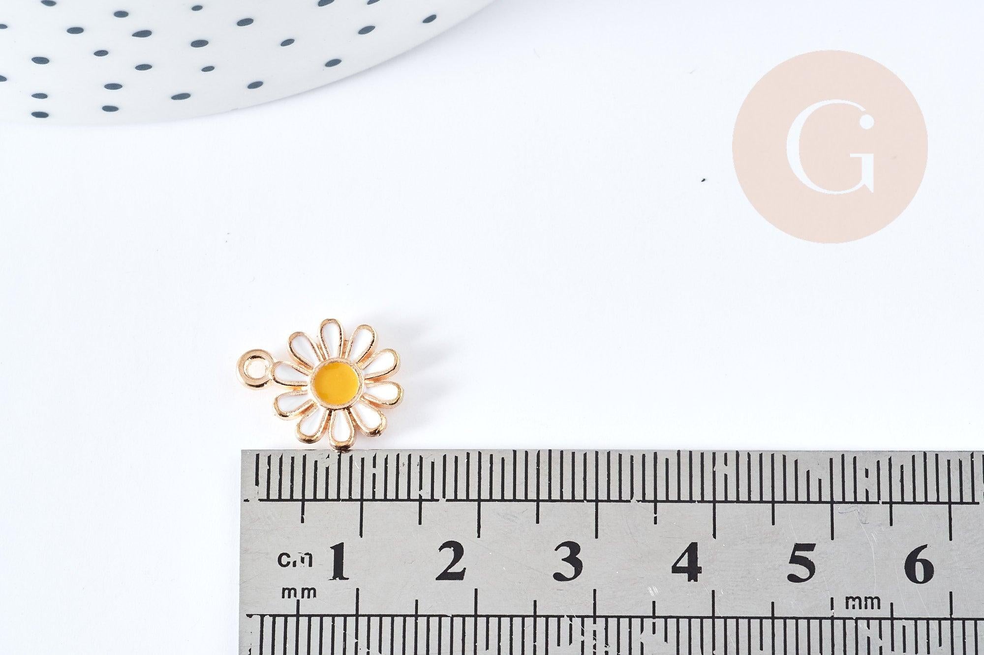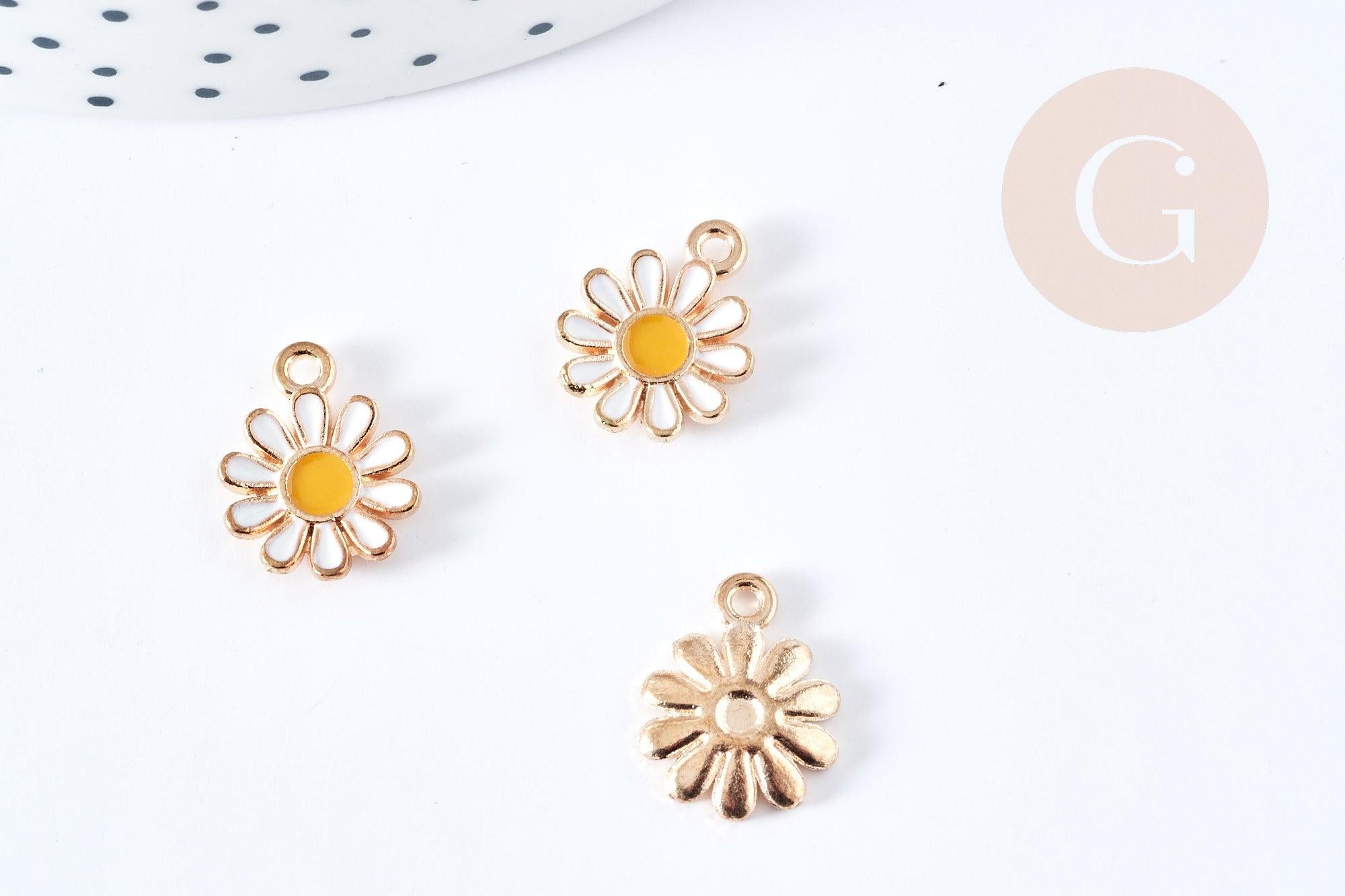 Colgante flor Margarita oro blanco esmaltado con zamac oro 15mm, creación de joyería, colgante oro, x1 G8611