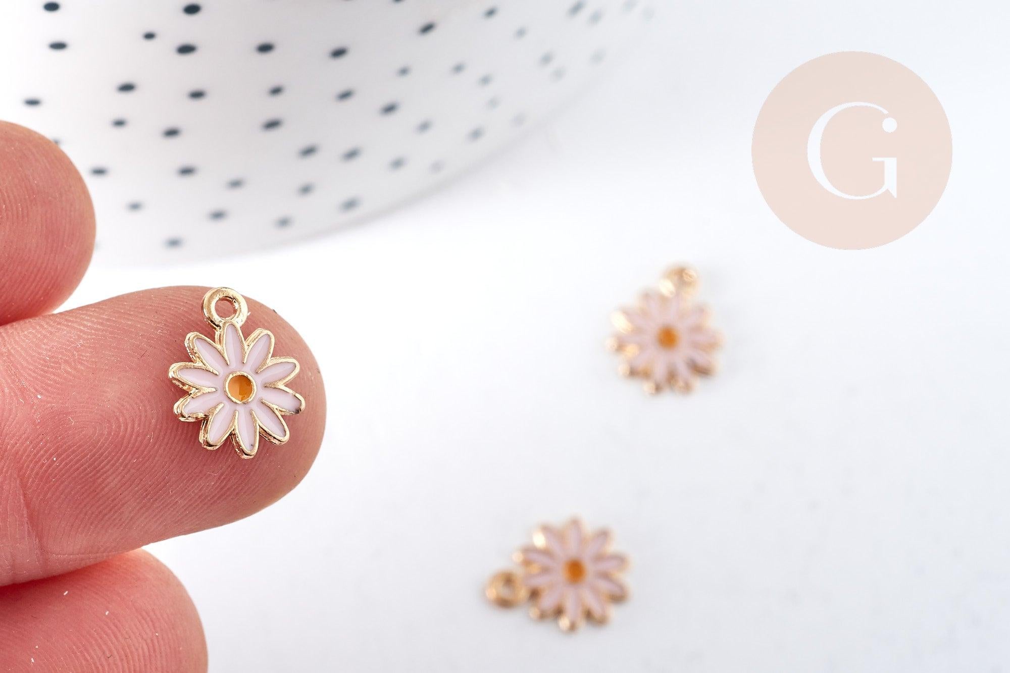 Colgante flor margarita oro rosa esmaltado con zamac oro 13mm, creación de joyería, colgante oro, x5 G8612